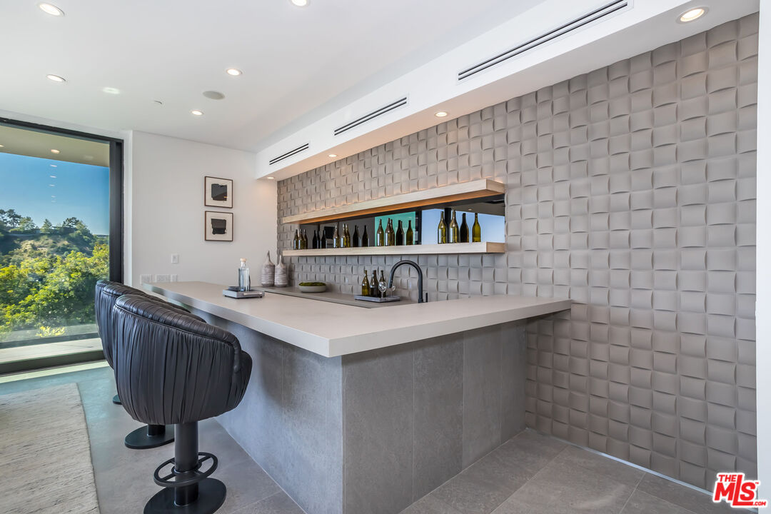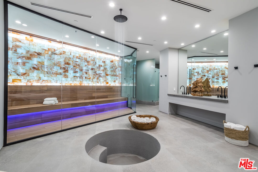 Property can be leased furnished at $75,000 monthly. Located in the prestigious Crest Streets in Beverly Hills, this architectural masterpiece offers unobstructed jetliner views from every room. The new construction smart house features Venetian wall finishes throughout, imported stonework, floor-to-ceiling walls and doors of glass, and over 3,400 sq. ft. of outdoor terraces, creating an unprecedented living experience. The 2,000 sq. ft. primary suite boasts a private glam room, hair salon, 2 garden lounge sitting areas, dual walk-in closets, wet bar, and glass shoe display room. The gourmet kitchen comes replete with a butler kitchen and pantry area. The sophisticated living and dining area is accentuated with a fingerprint-secured Mezcal/Wine tasting room. The lower entertainment level offers a luxurious bar, spa and theatre experience, including a zero-edge pool, Himalayan salt sauna, Japanese soaking tub, private yoga studio/gym, Tonal fitness system, wet steam room, poolside cabana room, and 20 person theater with bar. The private lower grassy yard is surrounded by lush landscaping and includes a large entertainment game space.