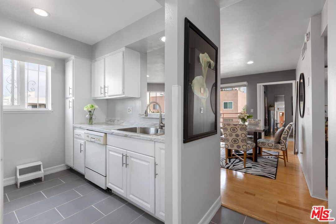 DTLA Top Floor, End unit with a private Balcony!! Updated and maintained to near new condition, this 2 bedroom, 1 bath unit features designer touches and exceptional livability. The bathroom opens to the bedroom and a walk in closet. Kitchen opens to the dining area and living room. Laminate wood flooring, updated fixtures and appliances, recessed lighting, and laundry hook ups support this restful, quiet space, that overlooks the courtyard. Local DTLA attractions include Staples and the Convention Center, LA Live. Close to Loyola Law School. Must See for yourself!