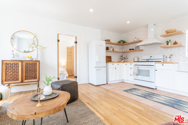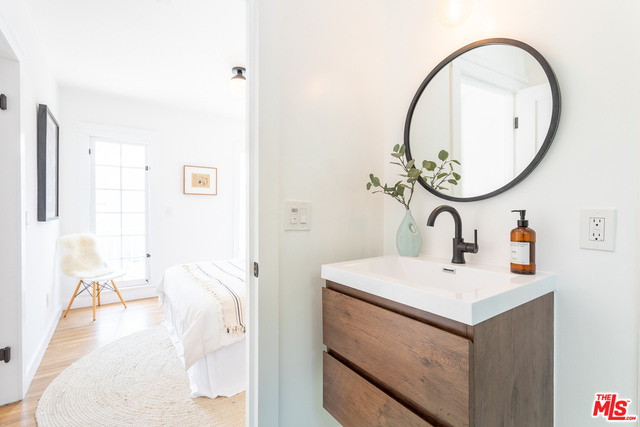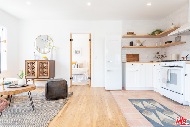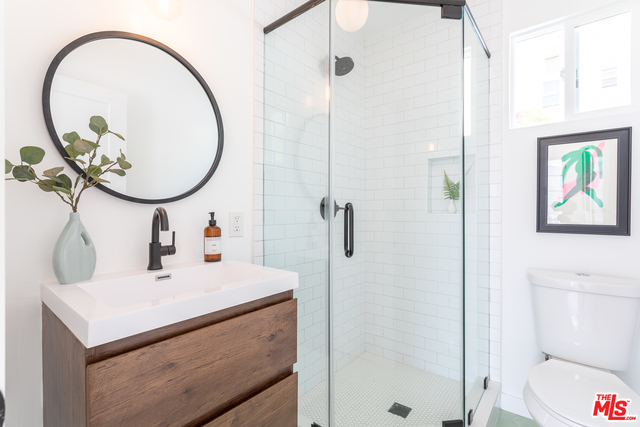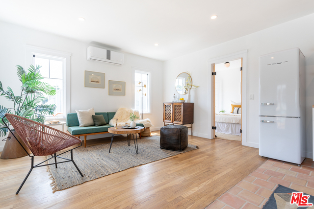 Imagine a century-old Craftsman home, awash with light, adorned with a bounty of vintage casement windows, painstakingly refurbished, original hardwood floors basking in the warm light, a new open kitchen with earthy terracotta tiling, floating wood shelving, an oversized farmhouse sink and new appliances. Can you see it? There's more, through the bedroom, you'll find French doors leading out to a romantic balcony perched atop a shared patioed outdoor space, prop your feet up on the balustrade and surrender to the sunrise, your morning spot is ready. Tucked in the closet, hidden behind blonde bi-fold doors is your washer/dryer. The brand new bathroom shines with a light emerald hex tile, floating cabinet and freshly tiled shower, it's all the space you need and nothing that you don't. Less is more, they say. But wait there's a secret room below you, a finished California basement with windows and light? Sounds too good to be true. Maybe more is more. Spacious with gleaming concrete floors, a bonus half bath, and roomy enough for an art studio or office. Welcome to your new Silver Lake home, where joy comes in all sizes. Upgrades in this intimate 3-unit community include low HOA's, parking, AC and heat, updated electrical, copper plumbing, and foundation serviced in 2020. Located in the iconic Silver Lake Junction neighborhood, blocks from world-renowned eateries, shops and more.