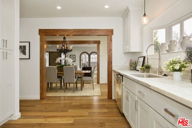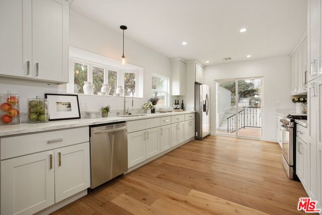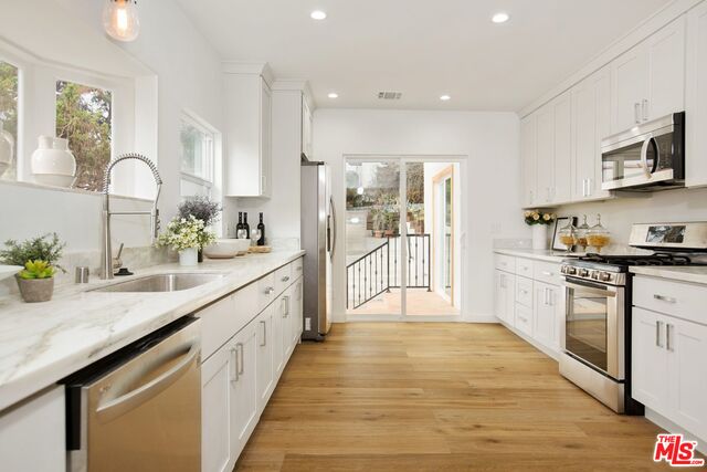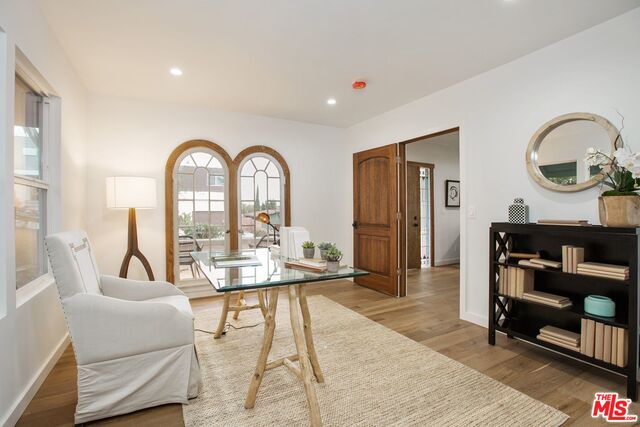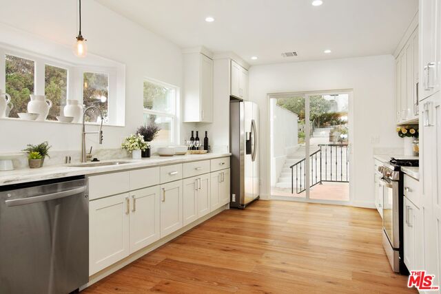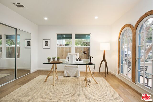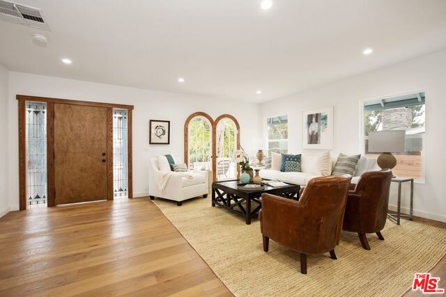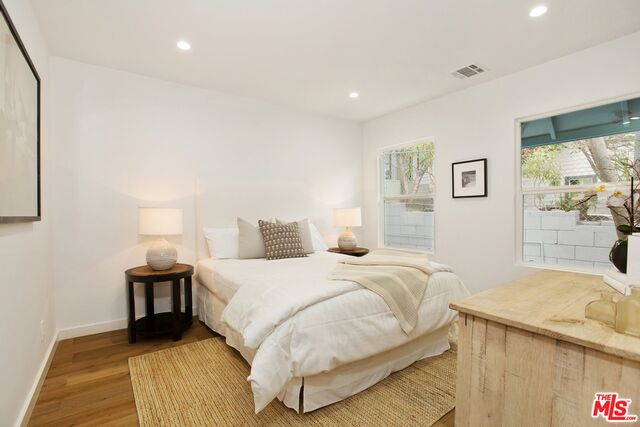 BOM - Huge price reduction! Set up off the street, this elegant Spanish Bungalow has been fully renovated with contemporary details. There's a new master suite and open floor plan as well as wide-plank oak flooring, HVAC system, recessed lighting, updated bathrooms and lots of closet space. The kitchen has solid surface counter tops, shaker door-style cabinets and stainless steel appliances. The front room works very well as an at home office/guest room or music/tv room. The rear yard has multiple destinations with a mature shade trees and sliding door access from both kitchen and master suite. Almost 8000 square feet lot which is zoned LAR2. Located on quiet street with central access to Silver Lake and northeast LA and a 10-minute drive downtown.