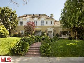 Traditional Colonial overlooking 16th Fairway of Wilshire CC - center hall; sunny & spacious living & dining rooms have bay windows; richly paneled den w/bar & fireplace; large/bright remodeled kitchen w/center island & golf course view plus breakfast room & butler's pantry; 3 bedrooms w/ensuite baths plus powder room; full guest house; private patios overlook lush yard & fairway. Crown moldings beautiful hardwood floors w/inlay. Big 2-car garage. A jewel in the heart of Hancock Park!