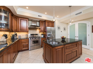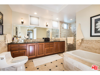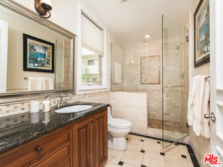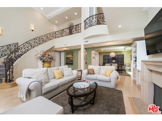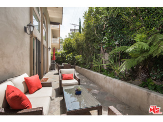 Extremely rare opportunity to acquire biggest & best unit in highly desirable and secure building. Steps from some of the best shopping & restaurants in LA, as well as world renowned Cedars-Sinai hospital. This stunning townhouse style unit boasts a fabulous open floor plan with a great flow. The impressive two story living room features a grand sweeping staircase, soaring ceilings, fireplace and windows that flood the room w/natural light. French doors lead out to private patio space that is perfect for entertaining! Spacious gourmet kitchen equipped w/stainless steel appliances, granite countertops & large center island. Adjacent dining area easily accommodates a large party. Additional bonus room w/bath can be den or extra bedroom. Luxurious Master suite w/dual closets, fireplace and a sumptuous bathroom with oversized shower and spa tub. Two additional bedrooms complete the upstairs. Three parking spots and additional storage in garage. An excellent value in a prime location!