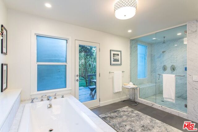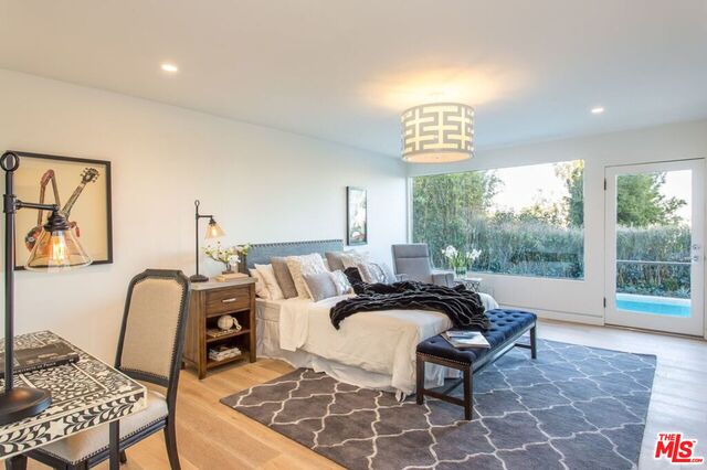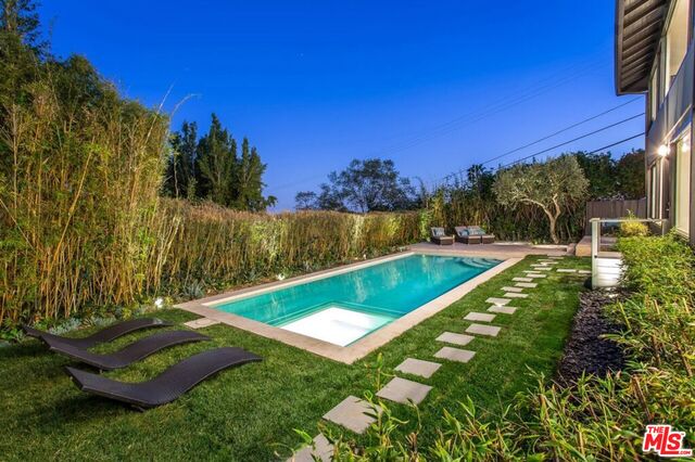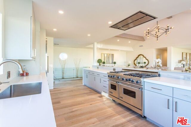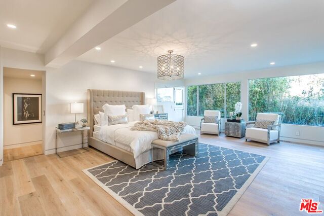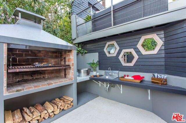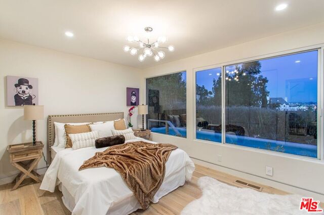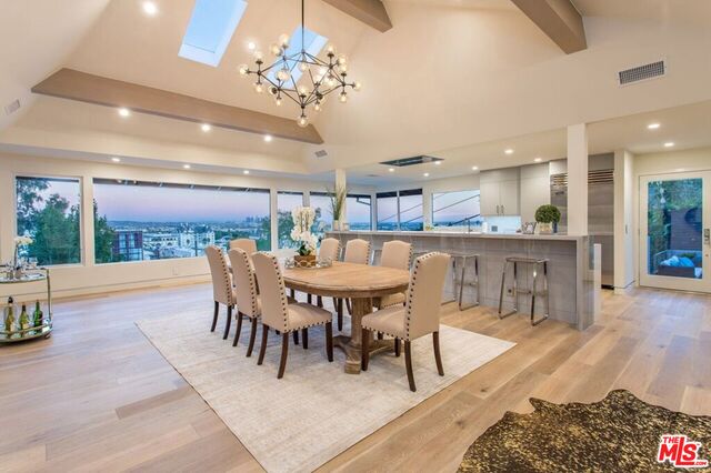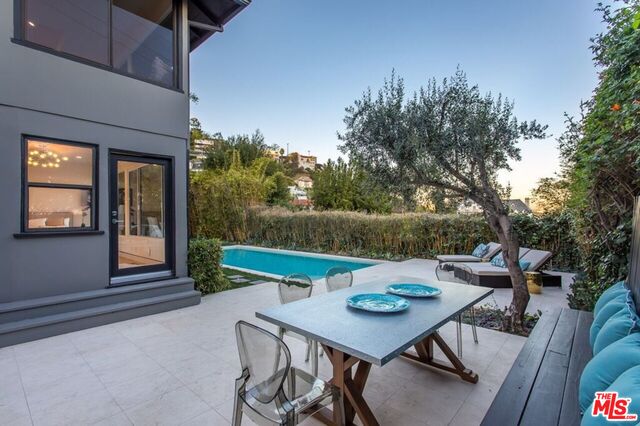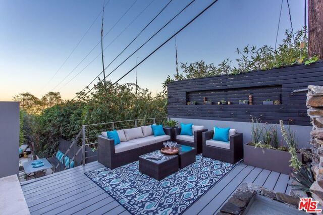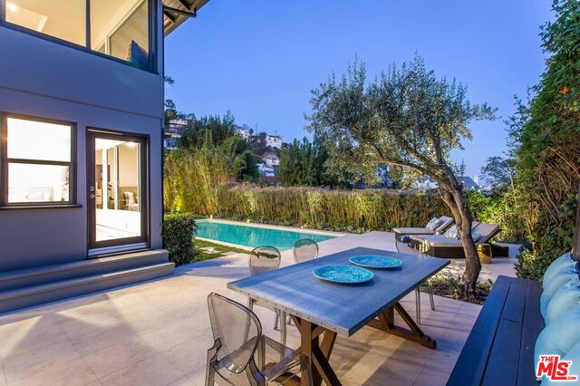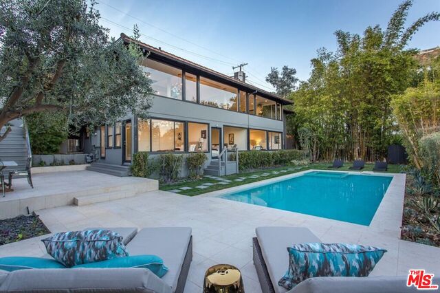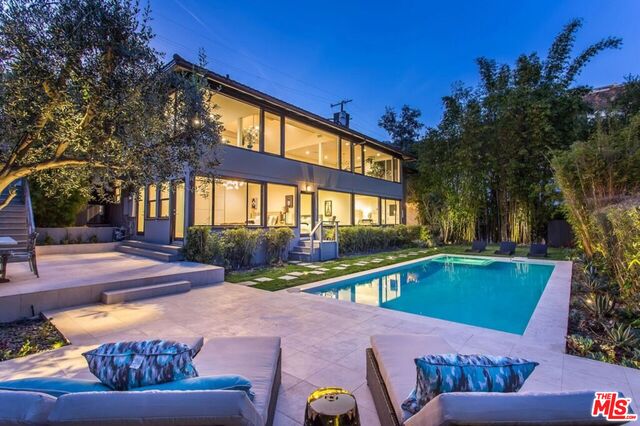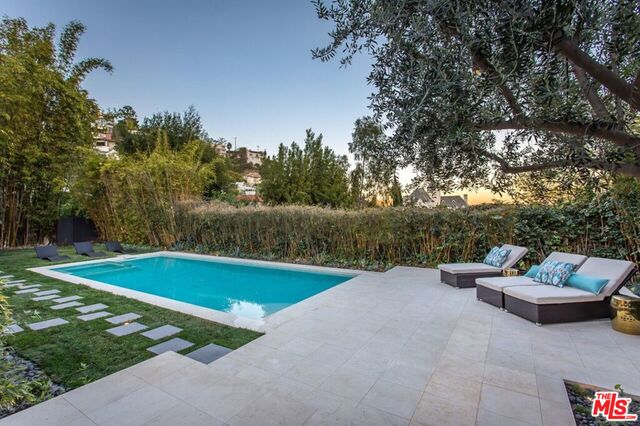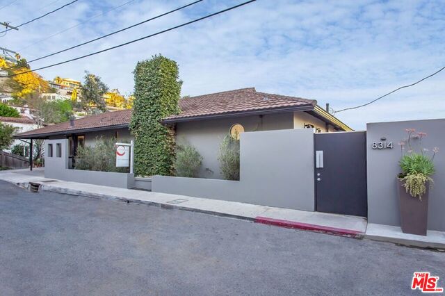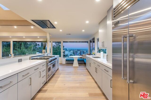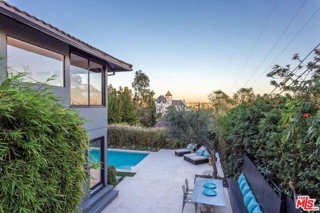 Perched on a cul-de-sac just above the Chateau Marmont, sits this completely renovated and gated estate with jetliner city views. A private entrance leads you to an expansive living room with soaring vaulted ceilings, sleek gourmet chef's kitchen with 15' center island, stainless professional-grade appliances, and ample natural light through the several skylights and wall-to-wall windows. The first level also features a modern office space with separate entrance. Three spacious downstairs bedrooms all have downtown views and direct access to a sprawling backyard with sparkling pool and BBQ area, including a master suite with an elegant spa-like bathroom subtly accented with Carrara marble. Ample parking with a 2-car garage, additional carport, and plenty of street parking. This thorough and tasteful renovation creates an ambiance of sophistication and warmth for the most discriminating buyer. See virtual tour.