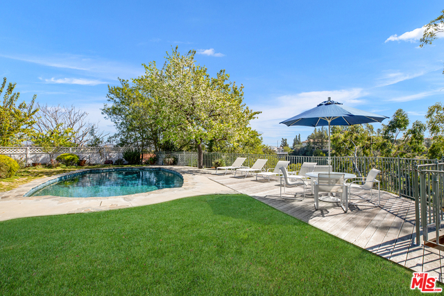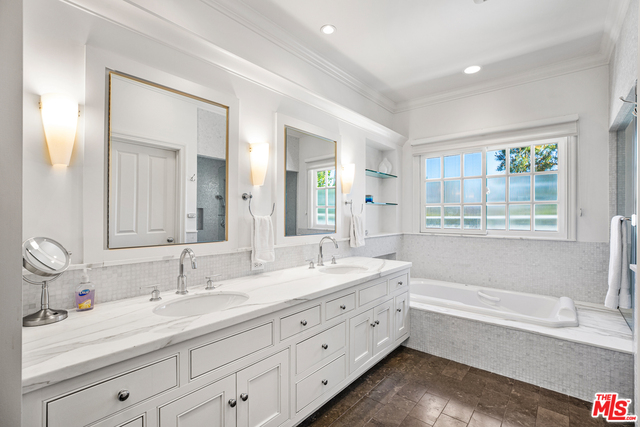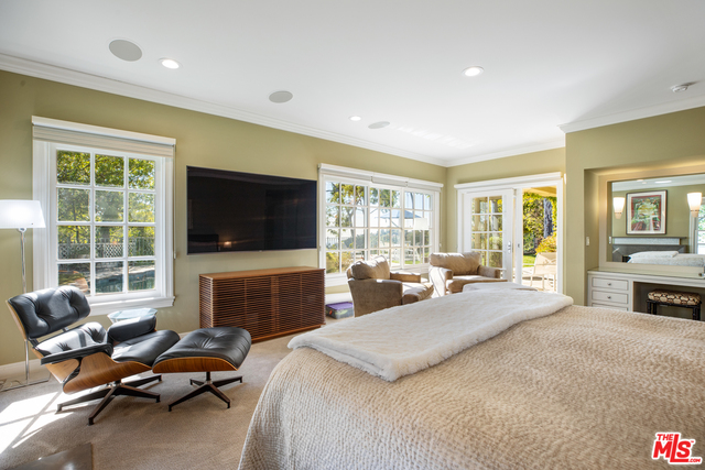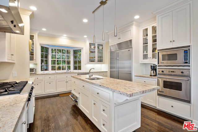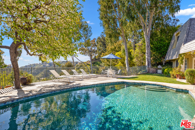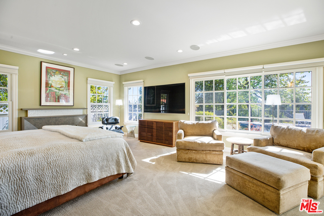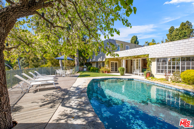 Located on a cul de sac, this remodeled Bel Air beauty has mountain and ocean views. The living room and family room all open up to a beautiful backyard with pool and grassy area. The large kitchen features Viking and Subzero appliances, double sinks, walk-in pantry, and an abundance of storage. The adjoining family room, master bedroom, 2 family bedrooms, and maids are all also on the first floor. The master bedroom includes fireplace, a luxe bath with Ultra-spa tub, steam shower, a walk-in closet and extra built-in's, and a large dressing area. The second story is a separate guest suite that consists of a large living room, bedroom, and bath - also perfect for a home office. Los Angeles living at it's finest!