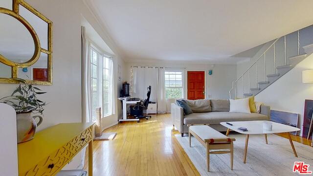 Looking for an owner occupant building with good income? This 4-unit architectural gem is on a quiet, tree-filled street. Between Olympic and San Vicente. The two rear units will be delivered vacant (2+1 townhome style 1150 sqft & 1+1 over detached garage 750 sqft). The front building has three townhome style 2-bed/1- baths each. The back is a one bedroom over 4 one car garages. The units are on separate meters and one garage has its own meter and was being used as an office. All units have their own laundry, dishwasher, hardwood floors and lots of storage. Original moldings, front bay windows and dining rooms in each unit. Strong rents and well-maintained buildings. The property is south of LACMA, close to The Grove, shopping and great restaurants. Short drive to Beverly Hills, West Hollywood, Hancock Park, etc.