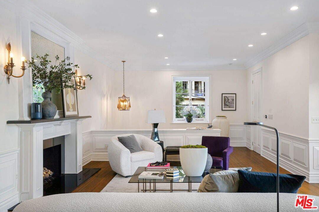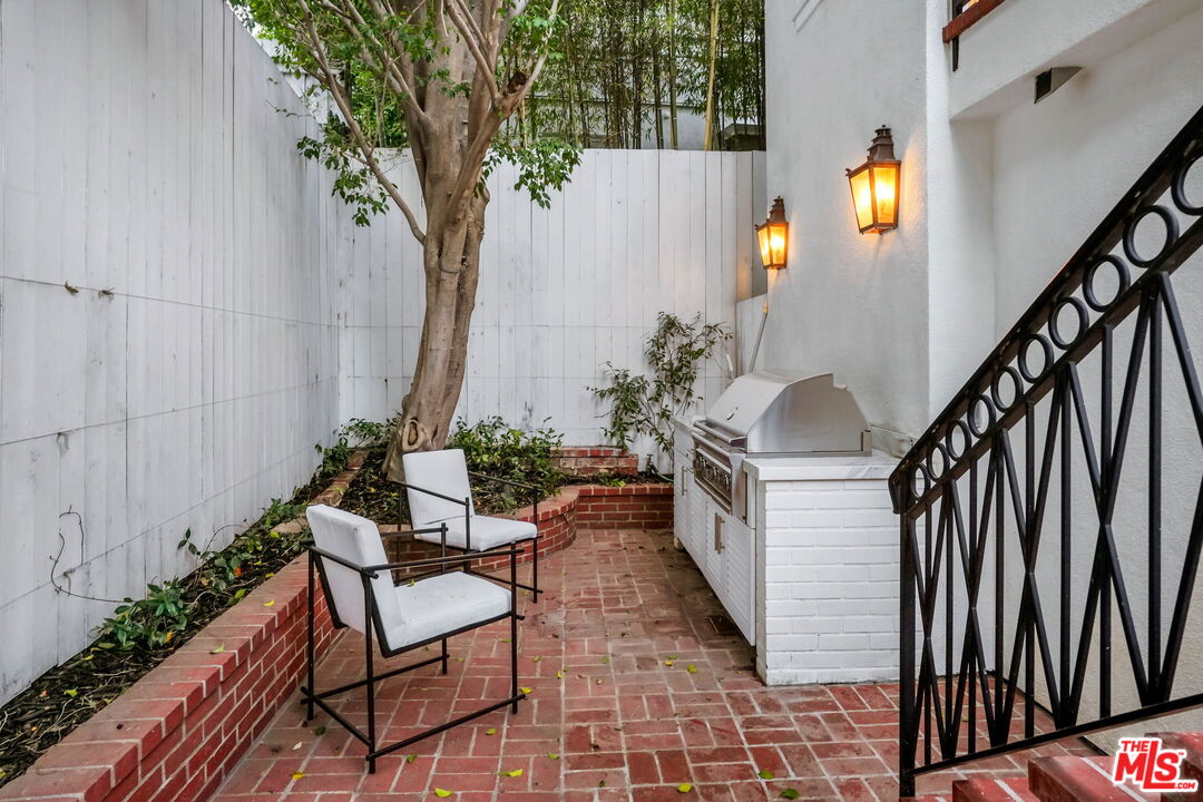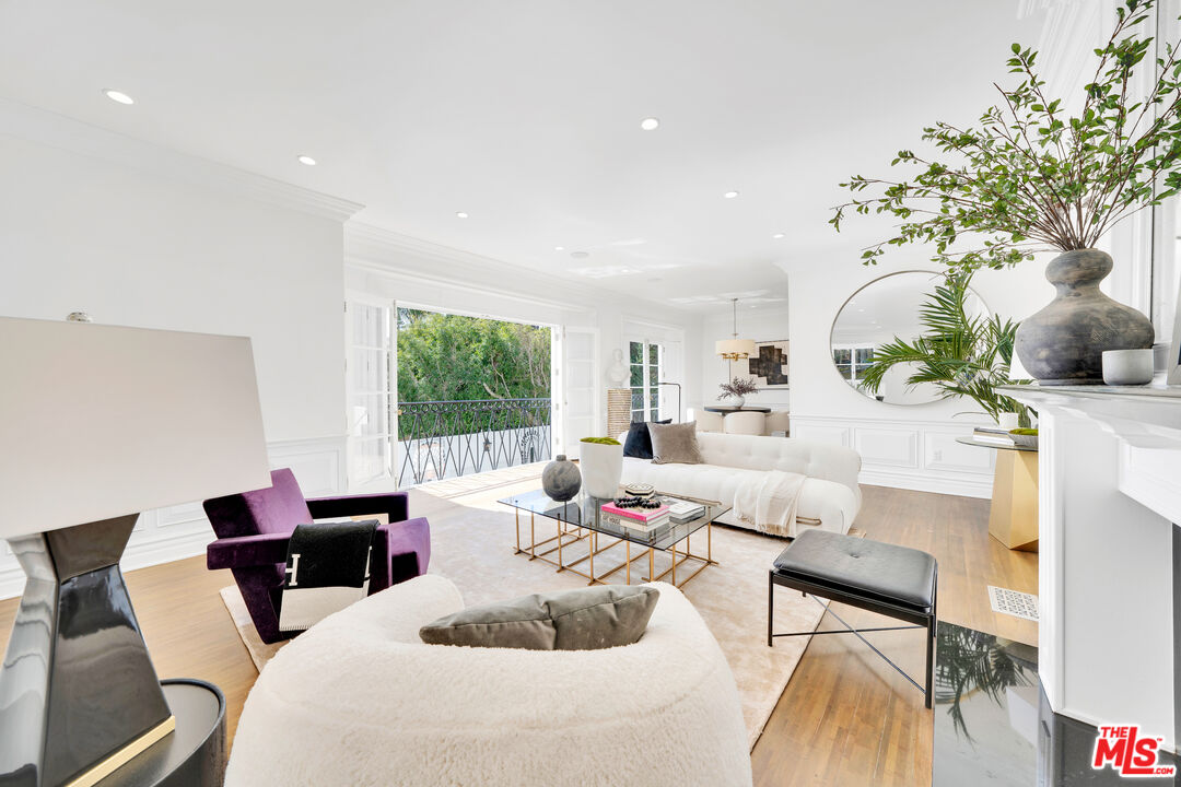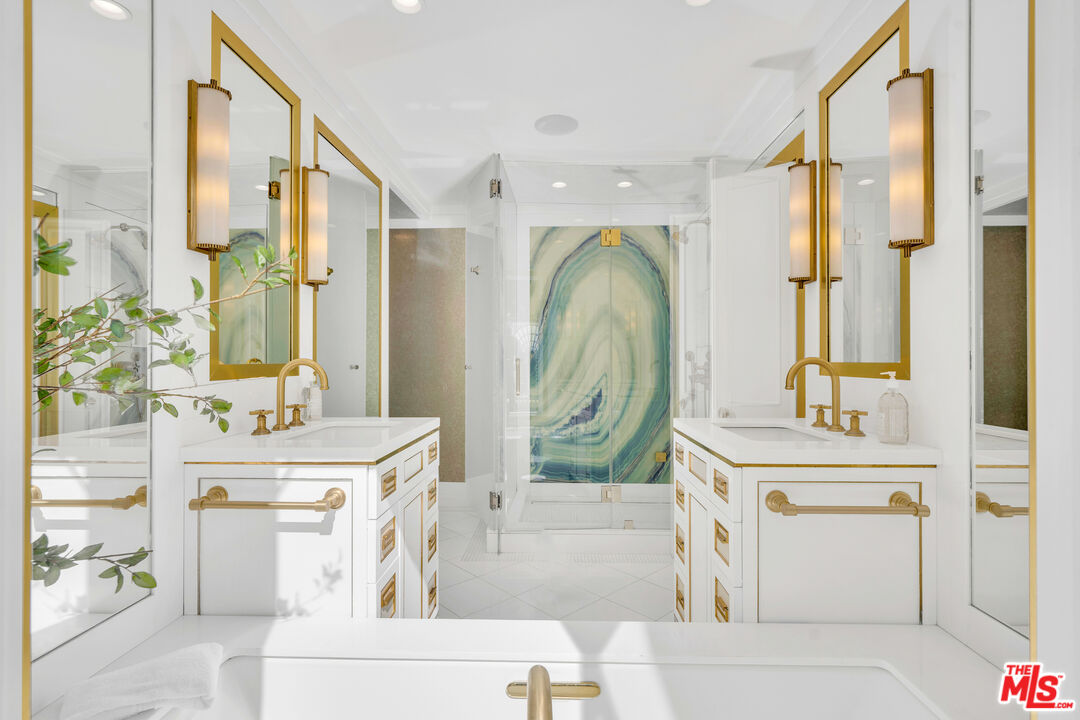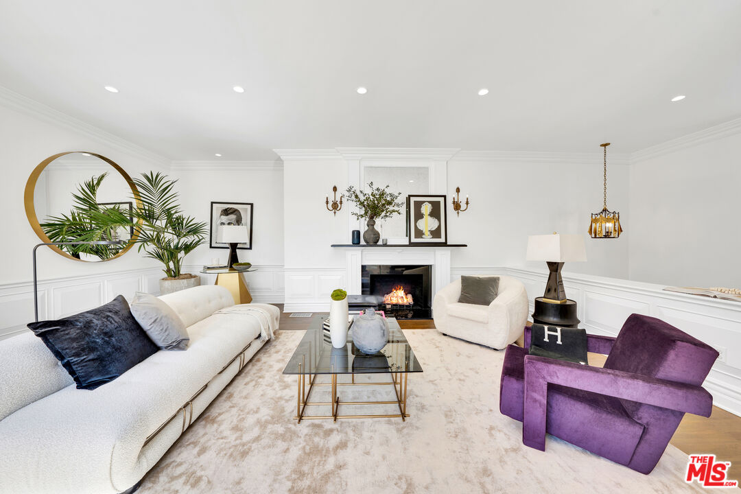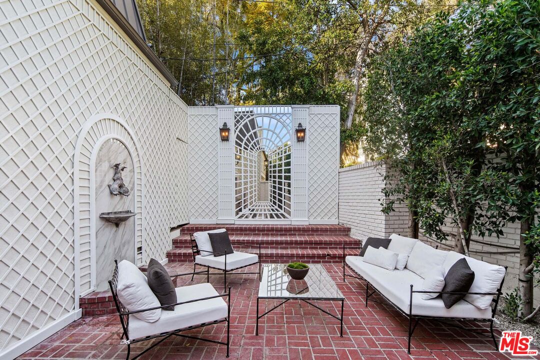 Experience the epitome of glamour and sophistication with this stunningly restored Hollywood Regency replete with city views. Originally built by Robert Woolf alongside his partner, the legendary architect John Woolf, for their own personal residence, this property has recently undergone an artful restoration by renowned AD100 designer Tim Corrigan. Every detail has been meticulously considered to create an ultra-luxurious, alluring, and simply timeless atmosphere. Enter past the gated brick courtyard with fountain into the quintessential foyer featuring gorgeous black-and-white checkered marble floors. The main floor boasts a sitting room with beautiful crown molding and fireplace, along with an exquisite powder room with inlaid brass walls and an intricate one-of-a-kind medallion marble floor. The home has dual master suites (one on each floor) each equipped with their own ensuite baths that are strikingly finished with his-and-her sinks, built-in brass/silver fixtures, huge slabs of stone, and a plethora of closet space. Ascend the original brass railing staircase to the salon room, which features a second fireplace, French doors, and breathtaking city views. The large dining area and European kitchen with top-of-the-line appliances and backlit stone backsplash are perfect for entertaining. Outside, the private yard features a large pool, built-in BBQ, and mature hedging. A finished basement, along with a finished 2-car garage with French doors that lead to the yard, complete this remarkable property. Don't miss this rare opportunity to own one of the most elegant and historic homes in Los Angeles.