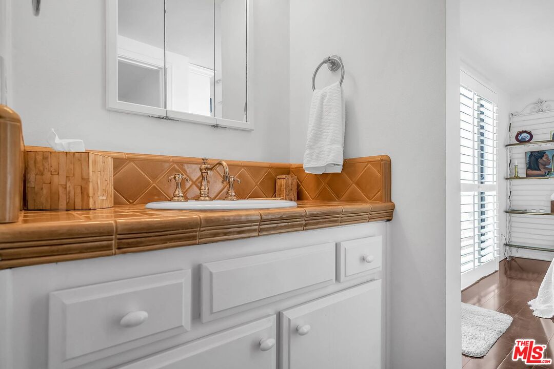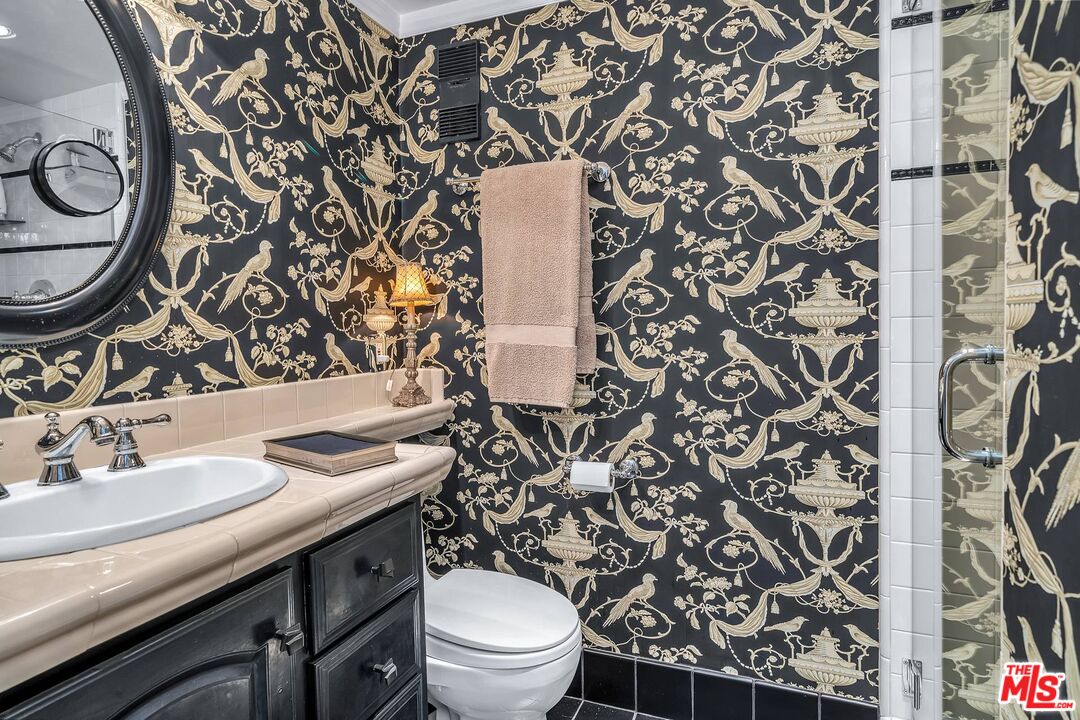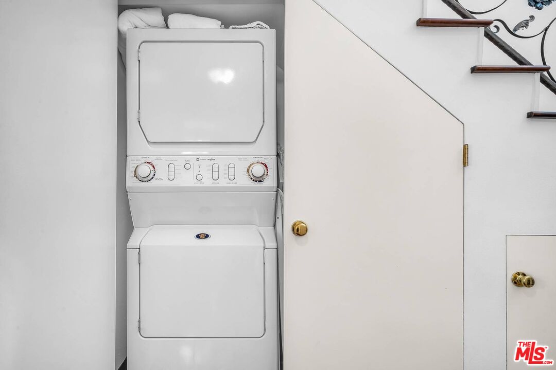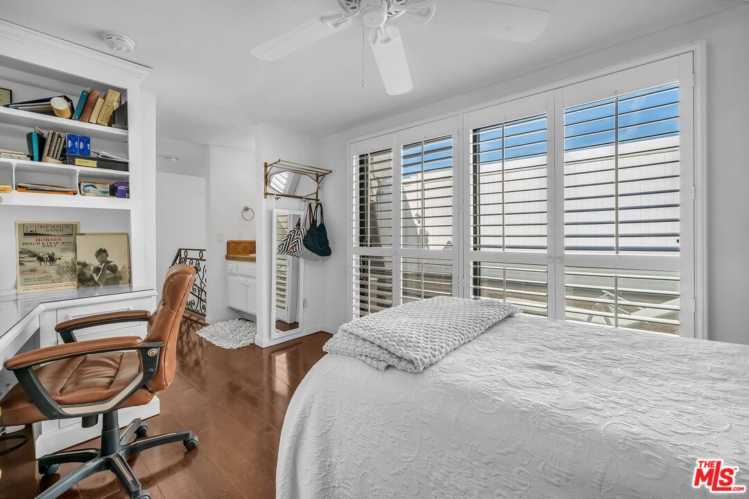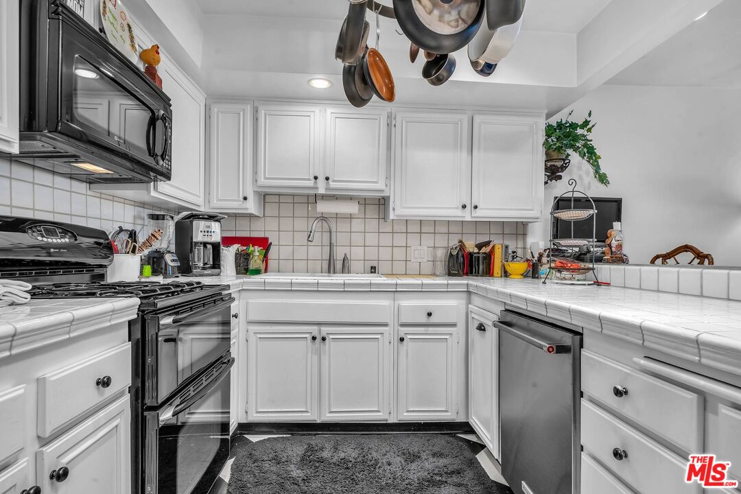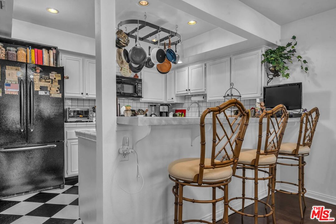 This stylish Manhattan penthouse is in a very desirable part of Los Angeles, located near a an upcoming multi-use shopping center. Upon entering this two story foyer unit with high ceilings, one feels as he/she has walked into an illustrious New York City art gallery. The main floor boasts an inviting cozy den with beautiful, large planked hardwood floors, Floor to ceiling windows and plantation shutters. Enjoy the oversized living room with fireplace and dining area with handcrafted, custom built bookshelves made to perfection. The living room is well ventilated with Tommy Bahama style, massive, ceiling fans. Charming patio also connected to the living room. The primary bedroom with high ceilings is on the main floor and features welcoming sunlight throughout as well as the lovely dressing area. This unit has generous closet space, a beautiful spa-like master bath with an oversized shower that is tastefully upgraded, a kitchen that is a chef's dream with an enormous walk-in pantry, chic, classic style black and white checkered flooring. The kitchen has raised ceiling to accommodate a large pot rack, giving ideal workspace for the true gourmet. An stylish 3/4 bath is also on this main floor. The elegant, custom black wrought iron staircase leads you to an inviting loft with a roof deck in complete privacy accompanied with a 1/2 Bath, an added bonus space, a walk-in storage area and an immense closet. The laundry closet is located strategically under the staircase for the ultimate space saving concept. This is elegance at it's BEST !