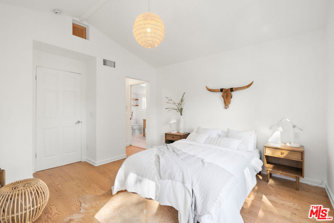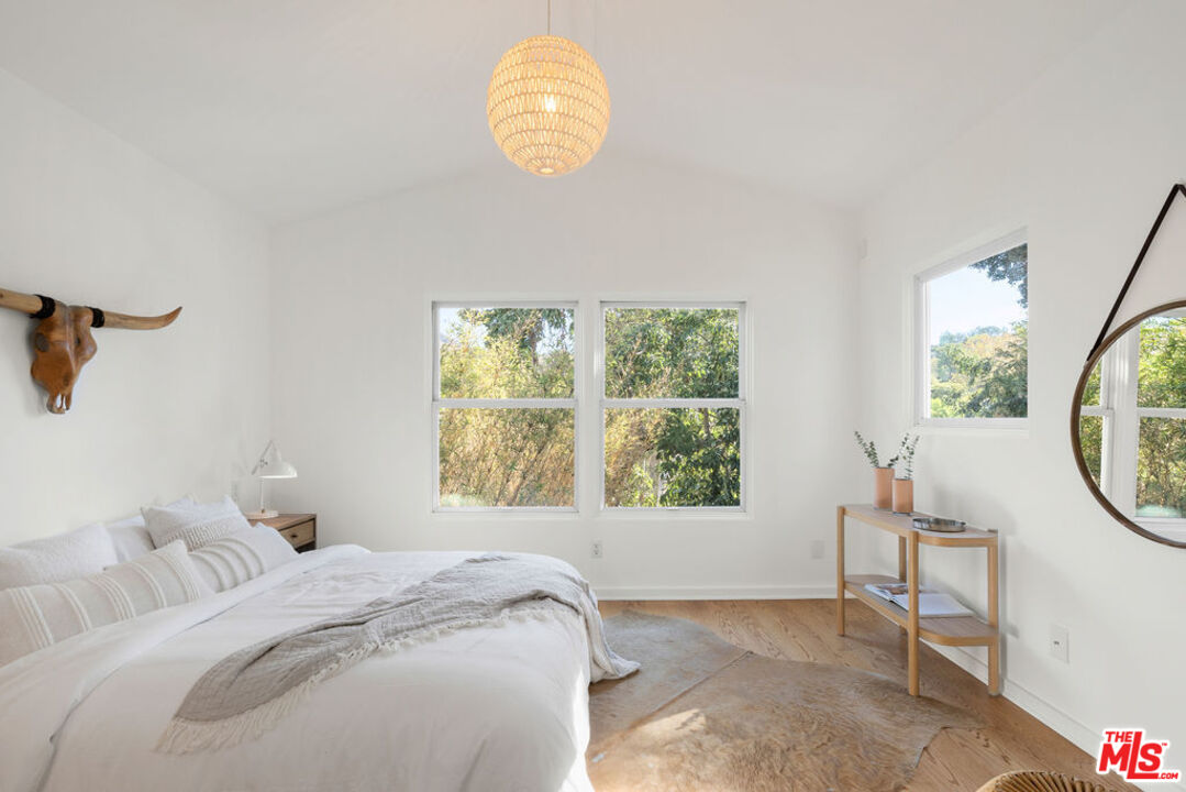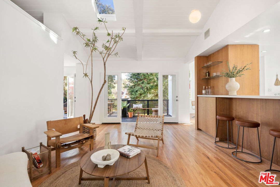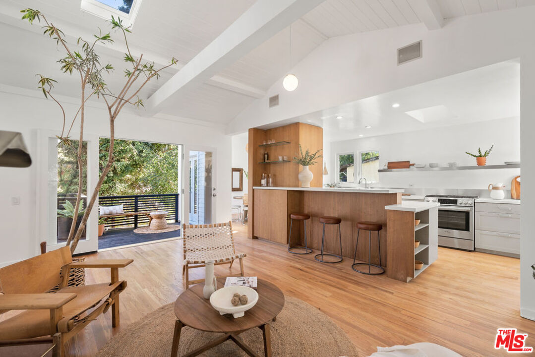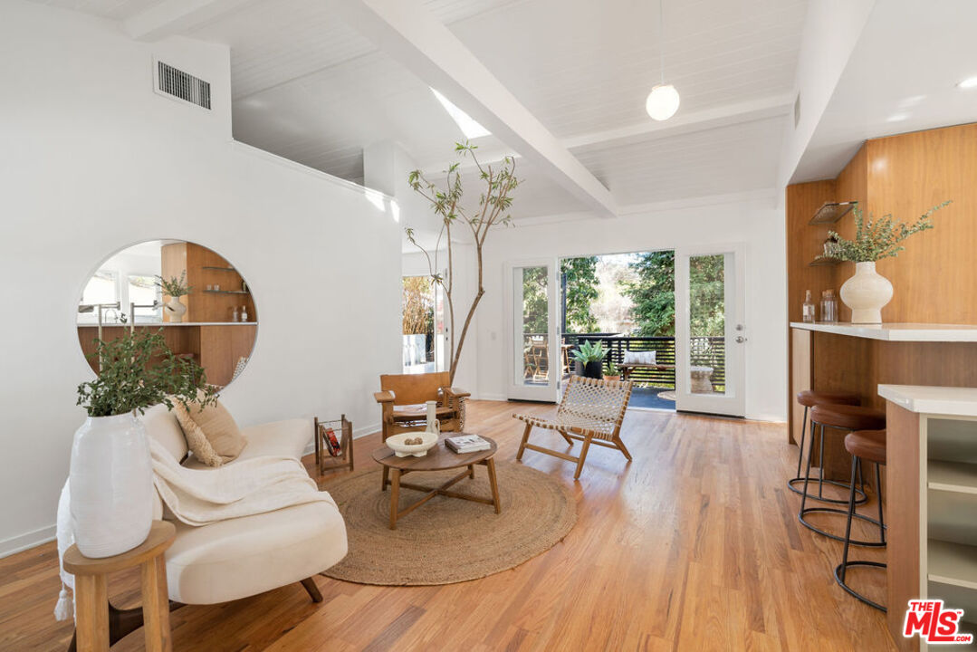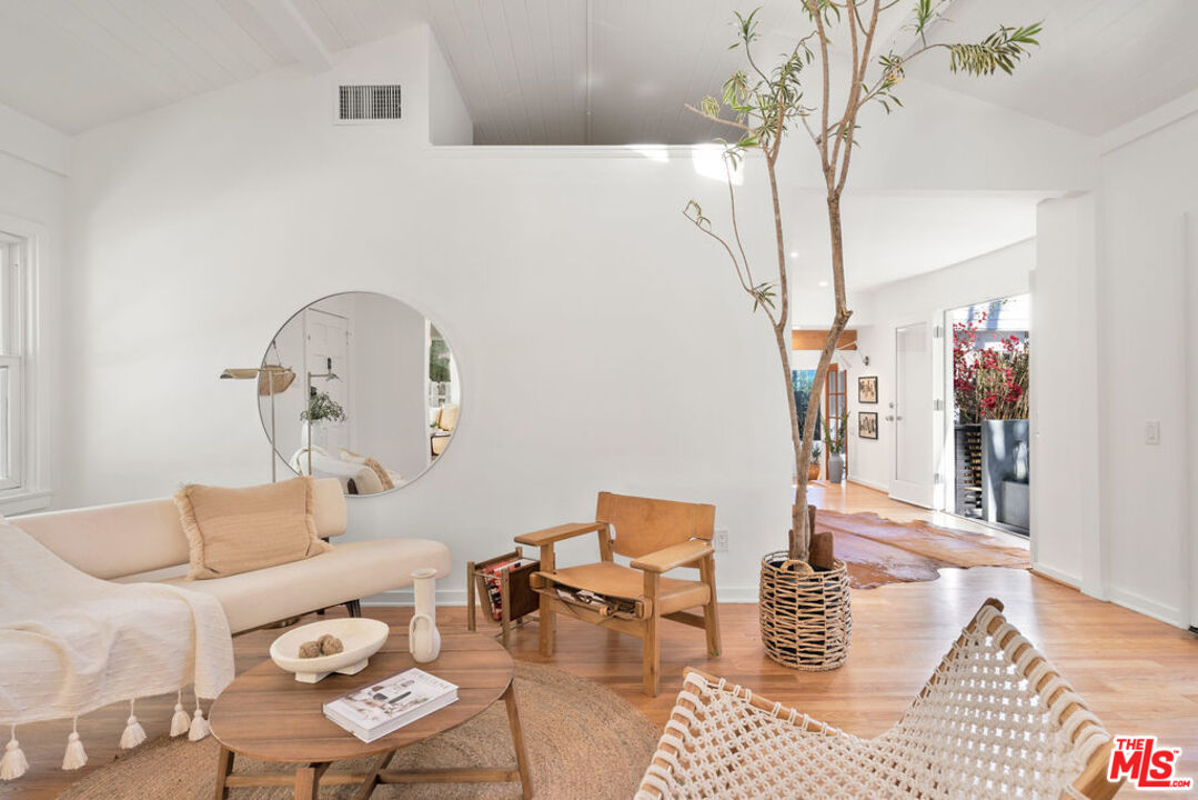 ALL OFFERS GIVEN TO SELLER UPON RECEIPT. SELLER WILL RESPOND TO ALL OFFERS MONDAY 11/22 @ NOON. Searching for a truly unique home in the Hollywood Hills? You'll love the stunning fusion of California chic mixed with architectural mid-century post-and-beam. Each room offers different voluminous dimension with tall ceilings + big windows casting tons of natural light and showcasing beautiful greenery making you feel like your living in your very own tree house! White walls balance warmly with oak floors while the vaulted, wood-clad ceilings soar overhead boasting skylights brightening each room, like the stunning kitchen! The heart of the home. Perfect for entertaining, it's open + airy with custom walnut cabinetry, luxe appliances, quartz countertops, and a built in breakfast nook. Retire to the comfort of one of three private retreats, including the sunlit primary ensuite with large closet, double sink vanity and walk-in shower or enjoy the cozy large den looking onto your big backyard. There is even a cool loft enjoy!! The unique floor plan is really fun, warm, and perfect to live and entertain. The indoor/outdoor flow makes each space feel large. Beautiful french doors transition to the expansive wood deck and concrete patio, both ideal for hosting and enjoying dining al' fresco. All surrounded by mature bamboo, avocado trees, agaves, and bougainvillea make the backyard relaxing and private. Additional large terraced yard offers more opportunity for further enhancement like more decking to hold your very own sauna/soaking tub? OR, start your own garden and live sustainably; It's all possible from this sweet offering! Other must-have features include central HVAC, recessed lighting, irrigation system, direct access 2-car garage, and owned solar panels. You'll be living in an unbeatable location in the Hollywood Manor, just minutes from freeways, Hollywood, westside, downtown, studios, and more!