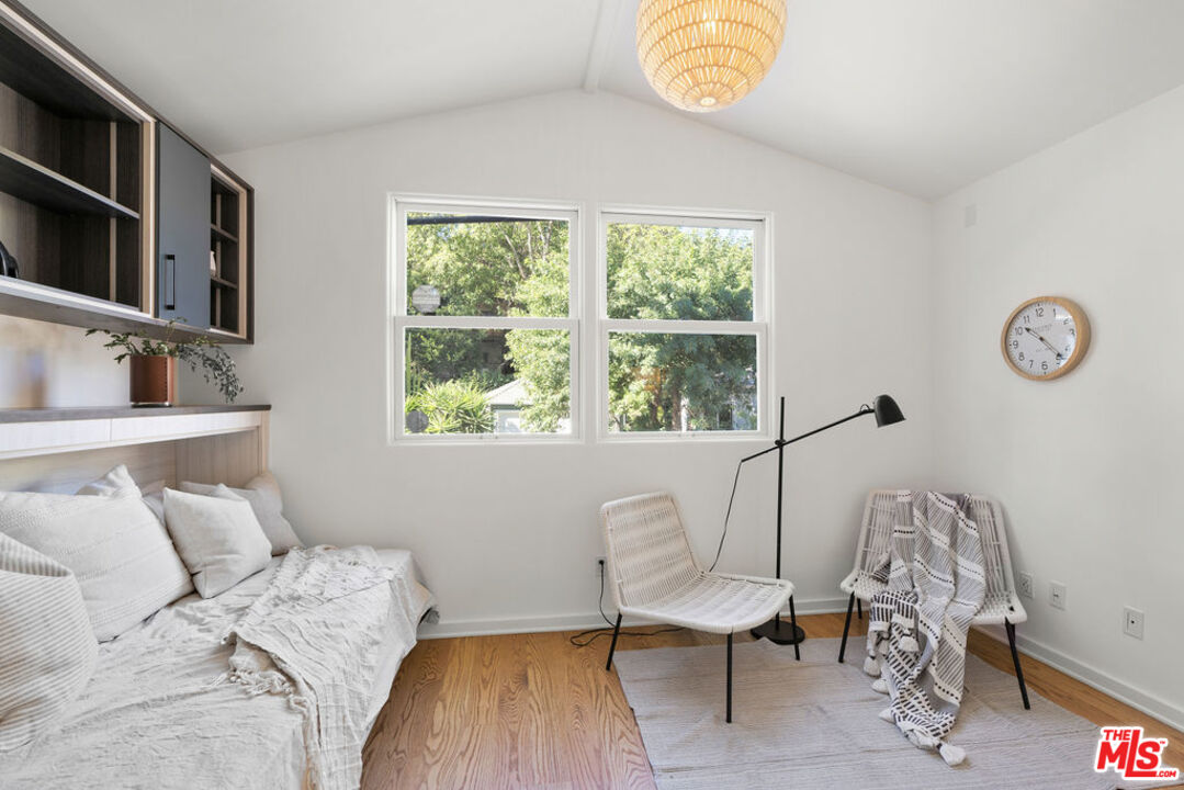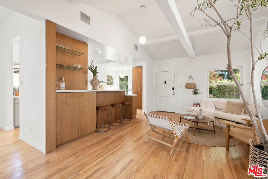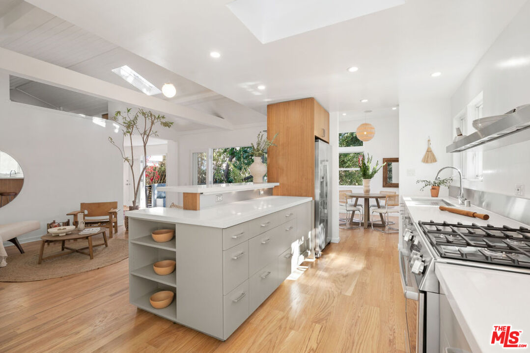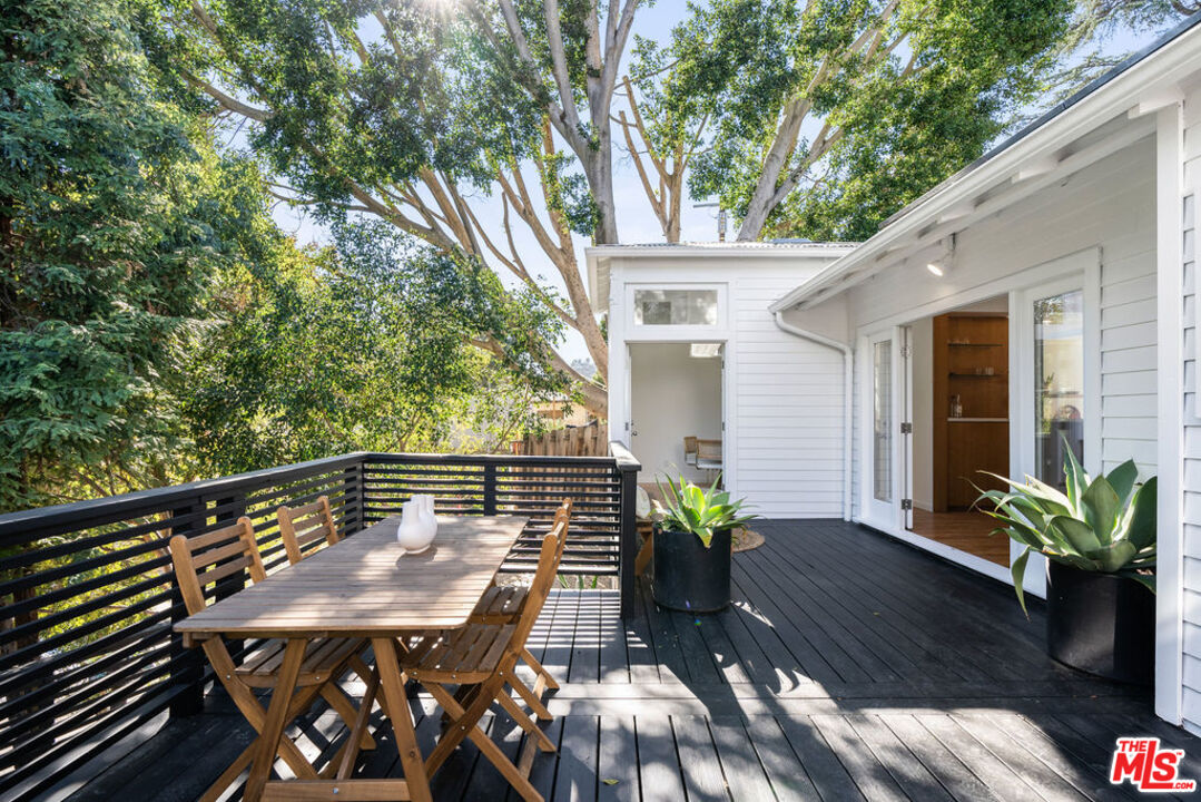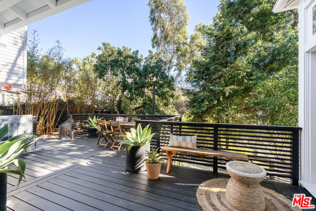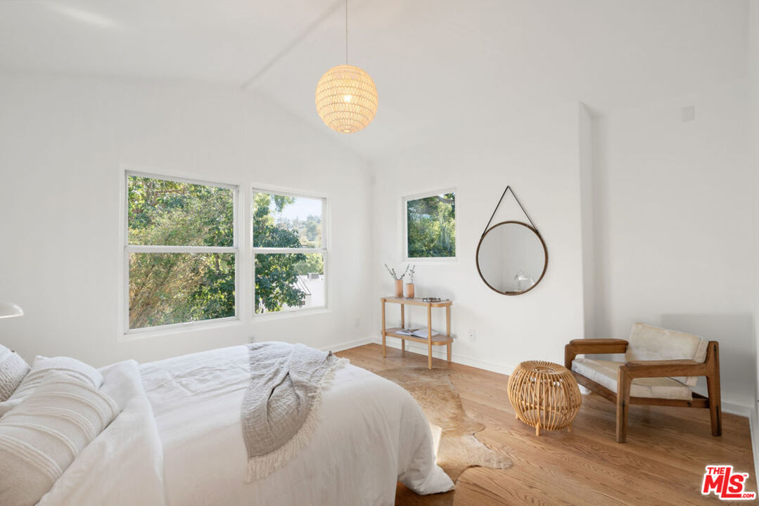 ALL OFFERS GIVEN TO SELLER UPON RECEIPT. SELLER WILL RESPOND TO ALL OFFERS MONDAY 11/22 @ NOON. Searching for a truly unique home in the Hollywood Hills? You'll love the stunning fusion of California chic mixed with architectural mid-century post-and-beam. Each room offers different voluminous dimension with tall ceilings + big windows casting tons of natural light and showcasing beautiful greenery making you feel like your living in your very own tree house! White walls balance warmly with oak floors while the vaulted, wood-clad ceilings soar overhead boasting skylights brightening each room, like the stunning kitchen! The heart of the home. Perfect for entertaining, it's open + airy with custom walnut cabinetry, luxe appliances, quartz countertops, and a built in breakfast nook. Retire to the comfort of one of three private retreats, including the sunlit primary ensuite with large closet, double sink vanity and walk-in shower or enjoy the cozy large den looking onto your big backyard. There is even a cool loft enjoy!! The unique floor plan is really fun, warm, and perfect to live and entertain. The indoor/outdoor flow makes each space feel large. Beautiful french doors transition to the expansive wood deck and concrete patio, both ideal for hosting and enjoying dining al' fresco. All surrounded by mature bamboo, avocado trees, agaves, and bougainvillea make the backyard relaxing and private. Additional large terraced yard offers more opportunity for further enhancement like more decking to hold your very own sauna/soaking tub? OR, start your own garden and live sustainably; It's all possible from this sweet offering! Other must-have features include central HVAC, recessed lighting, irrigation system, direct access 2-car garage, and owned solar panels. You'll be living in an unbeatable location in the Hollywood Manor, just minutes from freeways, Hollywood, westside, downtown, studios, and more!