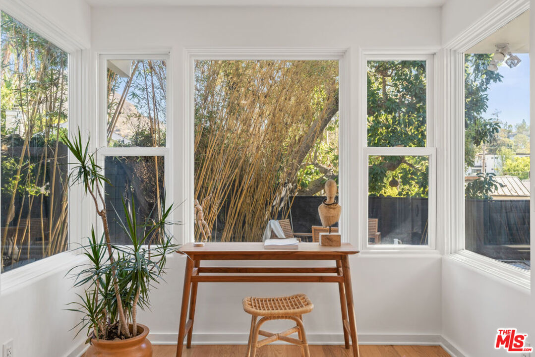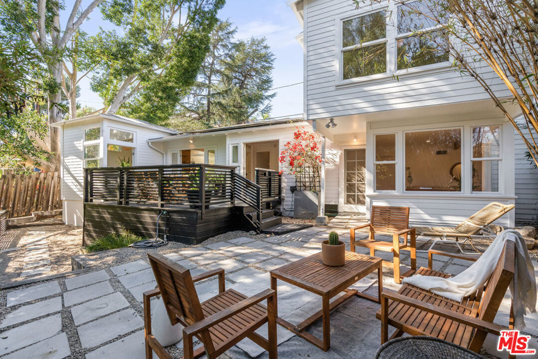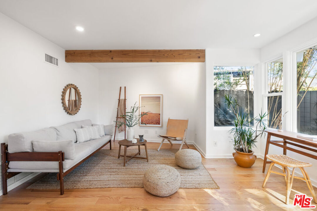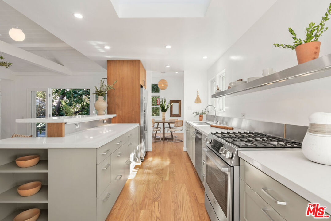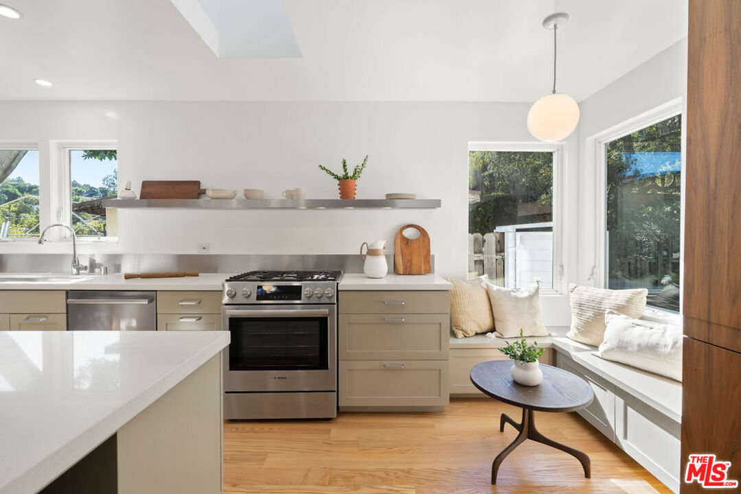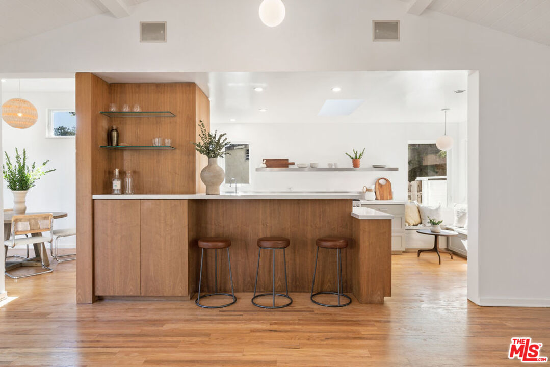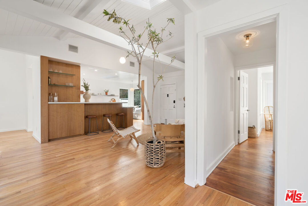 ALL OFFERS GIVEN TO SELLER UPON RECEIPT. SELLER WILL RESPOND TO ALL OFFERS MONDAY 11/22 @ NOON. Searching for a truly unique home in the Hollywood Hills? You'll love the stunning fusion of California chic mixed with architectural mid-century post-and-beam. Each room offers different voluminous dimension with tall ceilings + big windows casting tons of natural light and showcasing beautiful greenery making you feel like your living in your very own tree house! White walls balance warmly with oak floors while the vaulted, wood-clad ceilings soar overhead boasting skylights brightening each room, like the stunning kitchen! The heart of the home. Perfect for entertaining, it's open + airy with custom walnut cabinetry, luxe appliances, quartz countertops, and a built in breakfast nook. Retire to the comfort of one of three private retreats, including the sunlit primary ensuite with large closet, double sink vanity and walk-in shower or enjoy the cozy large den looking onto your big backyard. There is even a cool loft enjoy!! The unique floor plan is really fun, warm, and perfect to live and entertain. The indoor/outdoor flow makes each space feel large. Beautiful french doors transition to the expansive wood deck and concrete patio, both ideal for hosting and enjoying dining al' fresco. All surrounded by mature bamboo, avocado trees, agaves, and bougainvillea make the backyard relaxing and private. Additional large terraced yard offers more opportunity for further enhancement like more decking to hold your very own sauna/soaking tub? OR, start your own garden and live sustainably; It's all possible from this sweet offering! Other must-have features include central HVAC, recessed lighting, irrigation system, direct access 2-car garage, and owned solar panels. You'll be living in an unbeatable location in the Hollywood Manor, just minutes from freeways, Hollywood, westside, downtown, studios, and more!