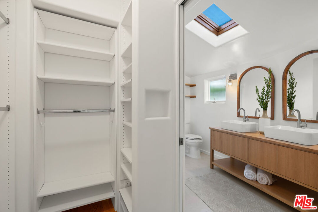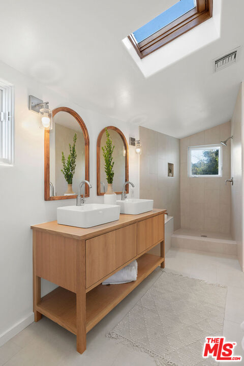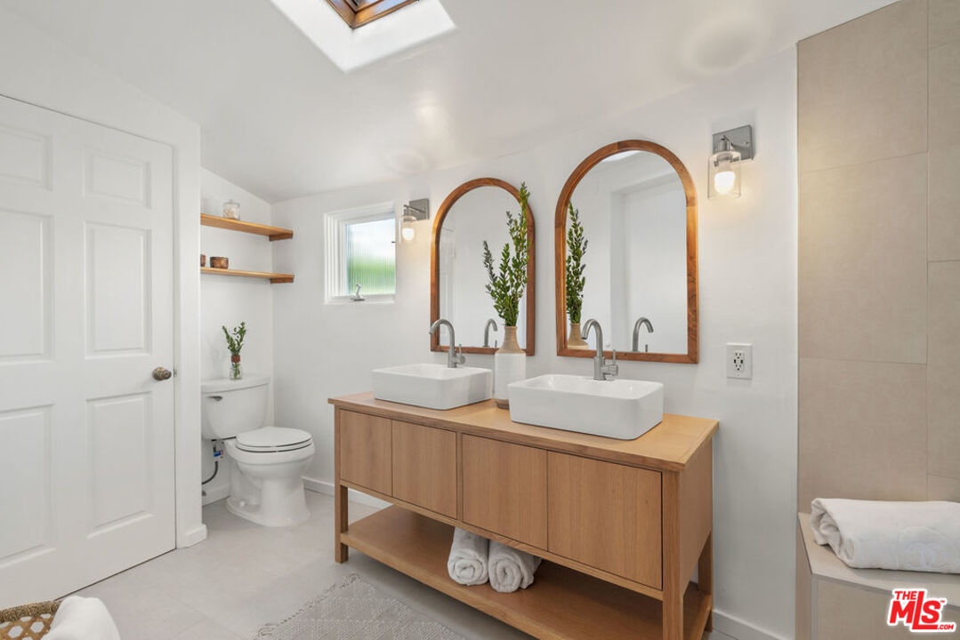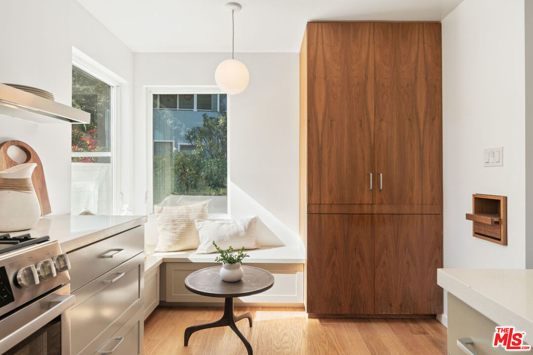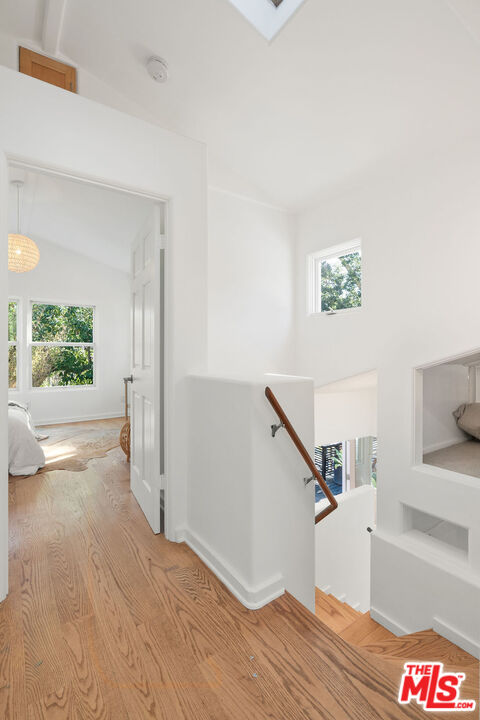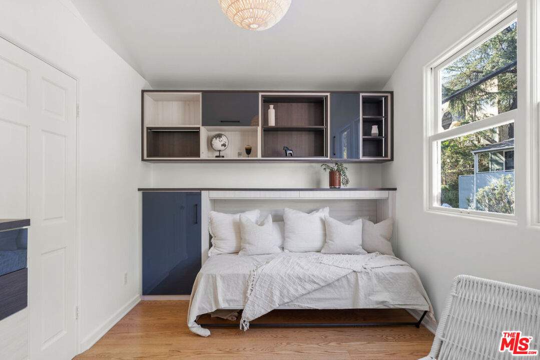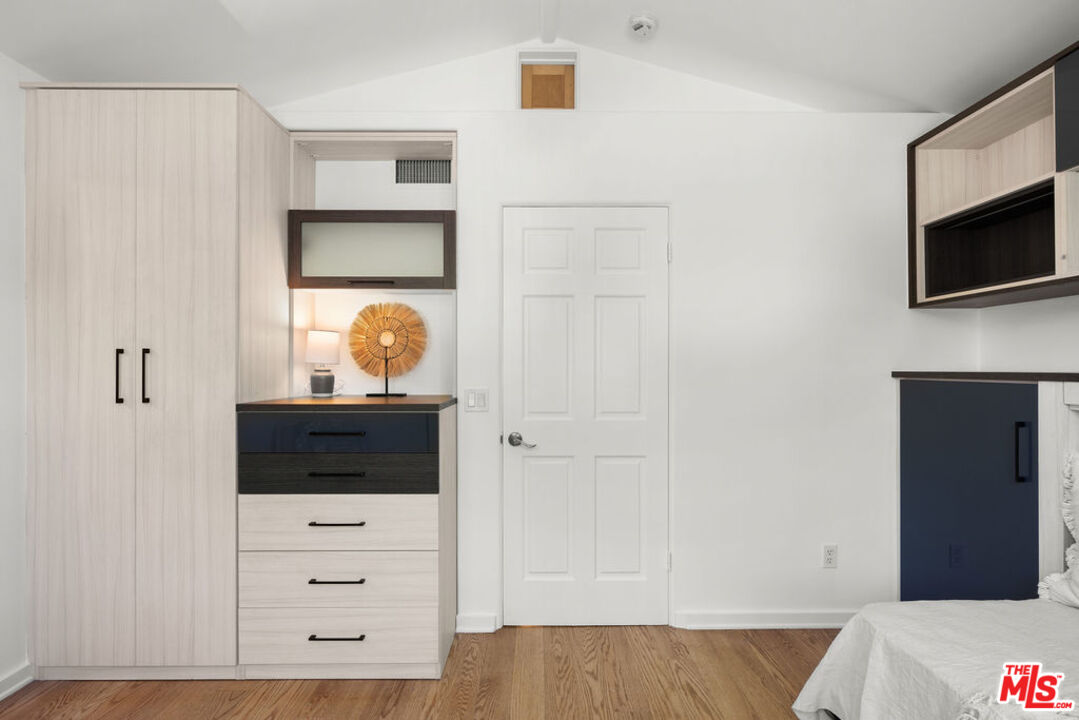 ALL OFFERS GIVEN TO SELLER UPON RECEIPT. SELLER WILL RESPOND TO ALL OFFERS MONDAY 11/22 @ NOON. Searching for a truly unique home in the Hollywood Hills? You'll love the stunning fusion of California chic mixed with architectural mid-century post-and-beam. Each room offers different voluminous dimension with tall ceilings + big windows casting tons of natural light and showcasing beautiful greenery making you feel like your living in your very own tree house! White walls balance warmly with oak floors while the vaulted, wood-clad ceilings soar overhead boasting skylights brightening each room, like the stunning kitchen! The heart of the home. Perfect for entertaining, it's open + airy with custom walnut cabinetry, luxe appliances, quartz countertops, and a built in breakfast nook. Retire to the comfort of one of three private retreats, including the sunlit primary ensuite with large closet, double sink vanity and walk-in shower or enjoy the cozy large den looking onto your big backyard. There is even a cool loft enjoy!! The unique floor plan is really fun, warm, and perfect to live and entertain. The indoor/outdoor flow makes each space feel large. Beautiful french doors transition to the expansive wood deck and concrete patio, both ideal for hosting and enjoying dining al' fresco. All surrounded by mature bamboo, avocado trees, agaves, and bougainvillea make the backyard relaxing and private. Additional large terraced yard offers more opportunity for further enhancement like more decking to hold your very own sauna/soaking tub? OR, start your own garden and live sustainably; It's all possible from this sweet offering! Other must-have features include central HVAC, recessed lighting, irrigation system, direct access 2-car garage, and owned solar panels. You'll be living in an unbeatable location in the Hollywood Manor, just minutes from freeways, Hollywood, westside, downtown, studios, and more!