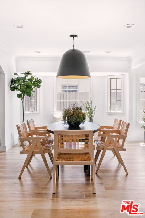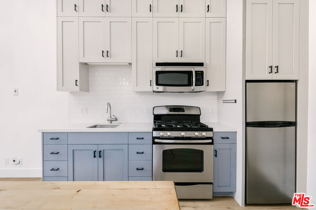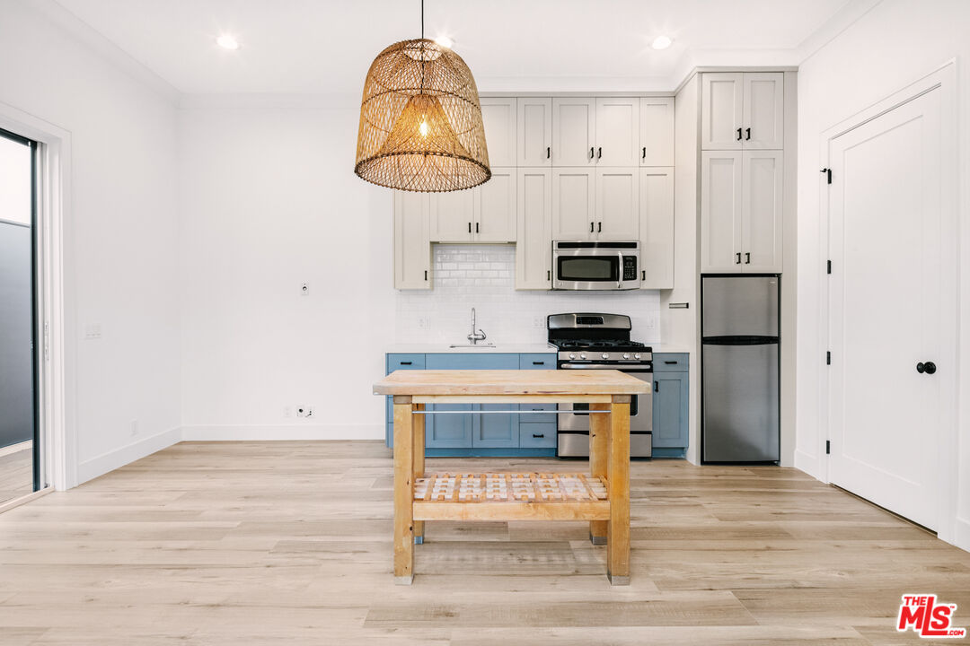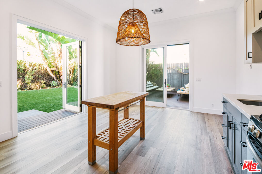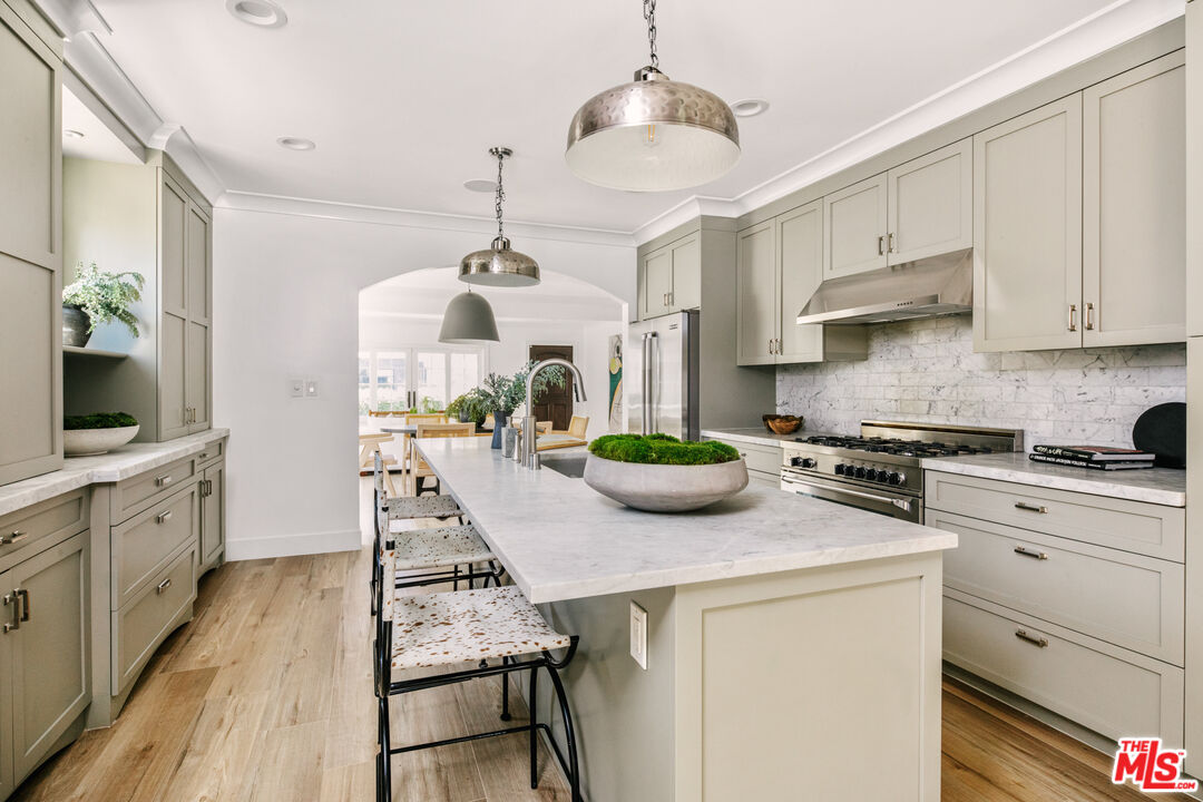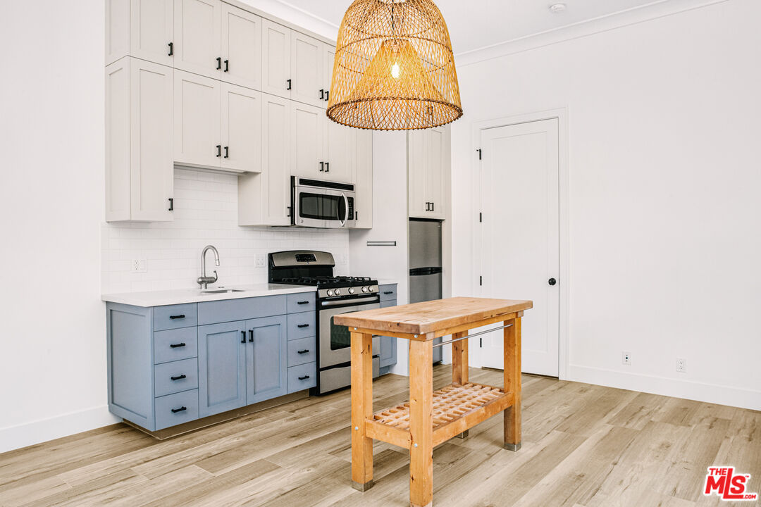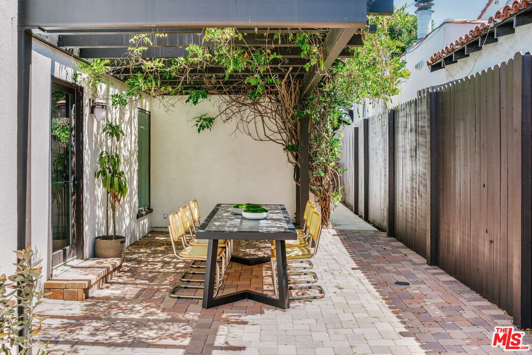 This masterfully remodeled 1920's Spanish gem affords the luxury of single-family living in the heart of West Hollywood. The property is situated within short distance to restaurants, shopping, and more while offering complete privacy behind a hedged and gated front entrance. Brand new flooring and fixtures have refreshed the property, offering a contemporary edge while maintaining its original 1920s charm. The main house features 3 bedrooms, 2 baths, a gorgeous sitting room with a fireplace, chef's kitchen, and a living room boasting vaulted ceilings with exposed wood beams. The tranquil backyard leads to a separate studio space with a full kitchen and bathroom, perfect for a workspace or home gym, and a shed providing ample storage.