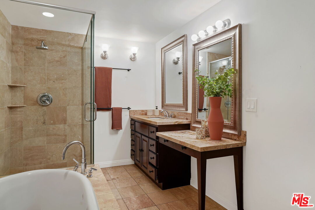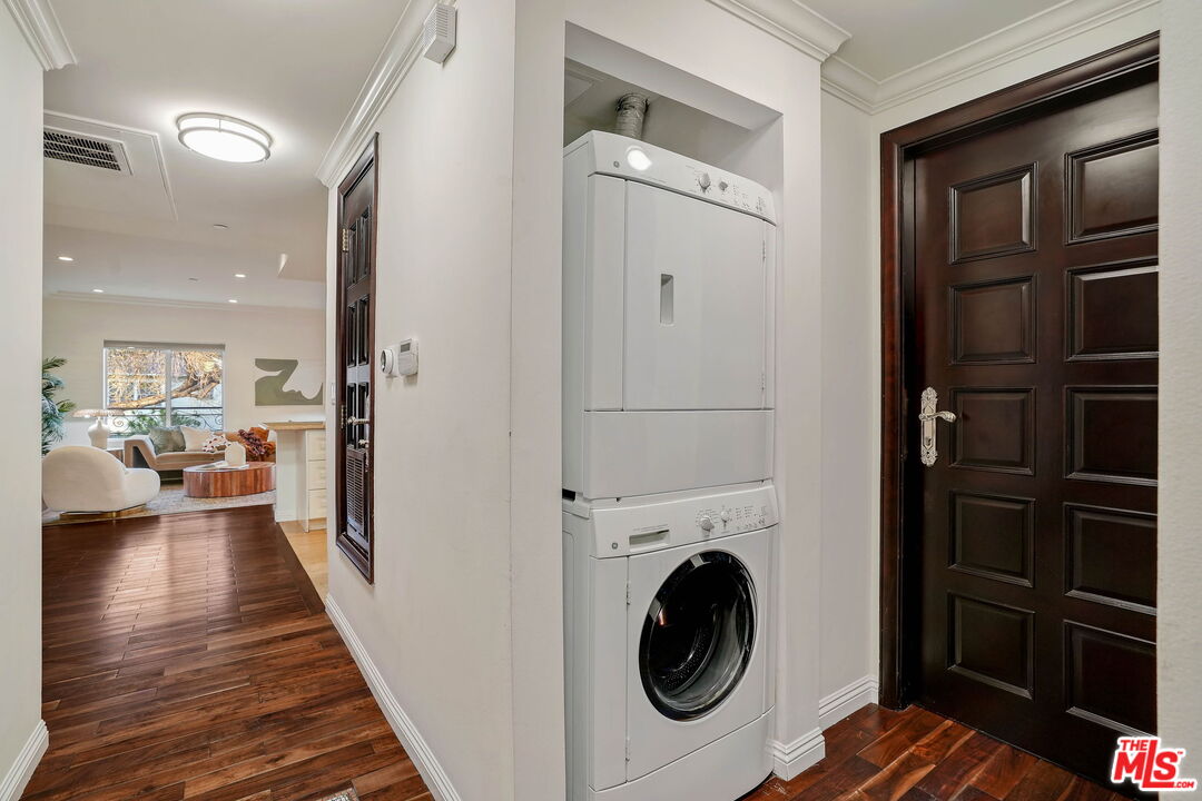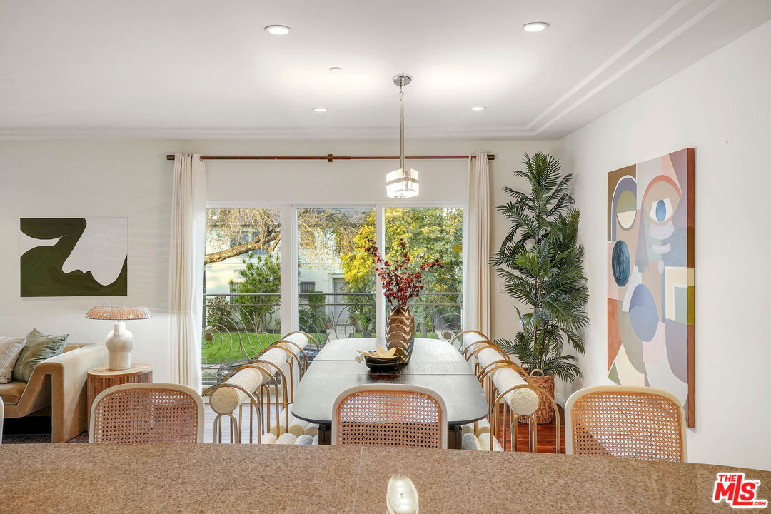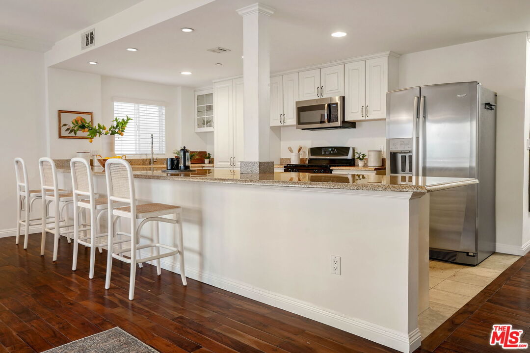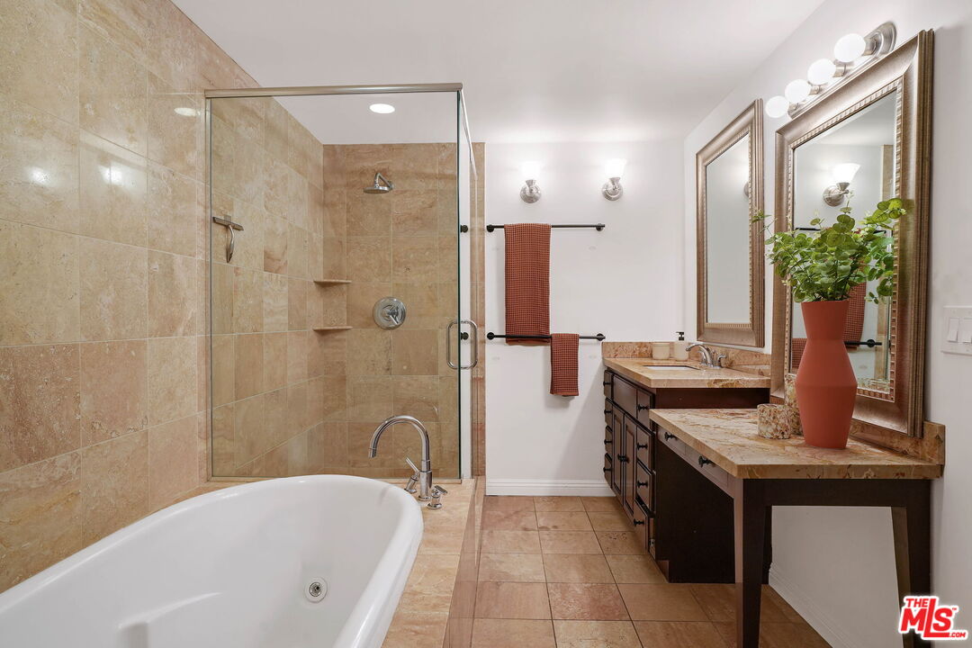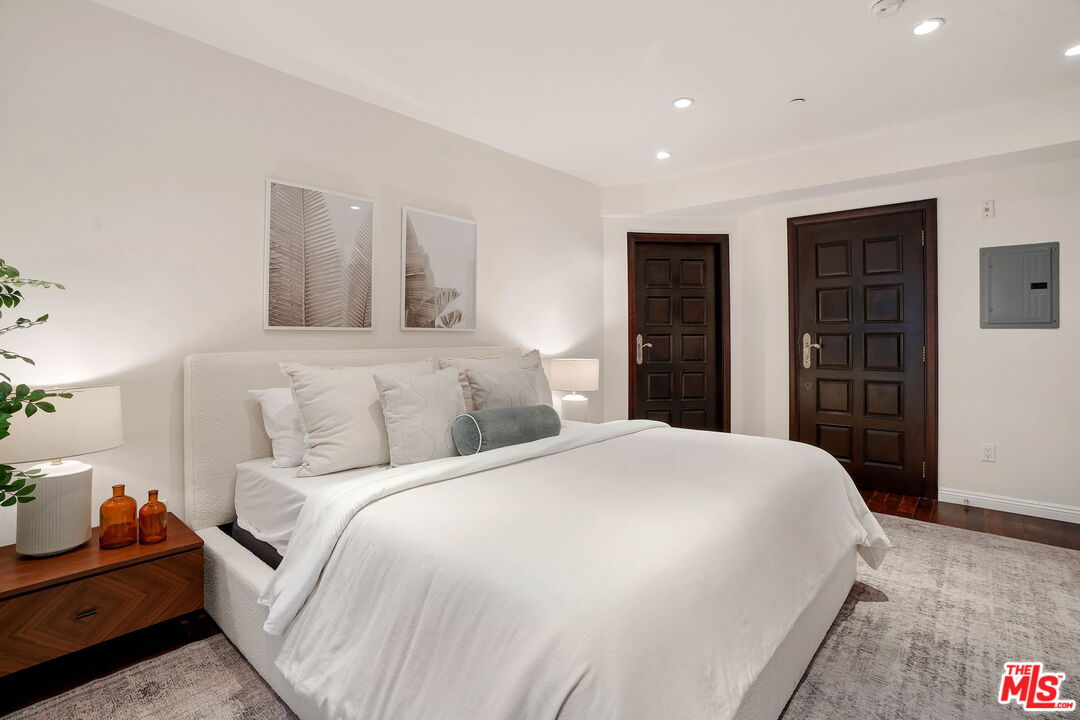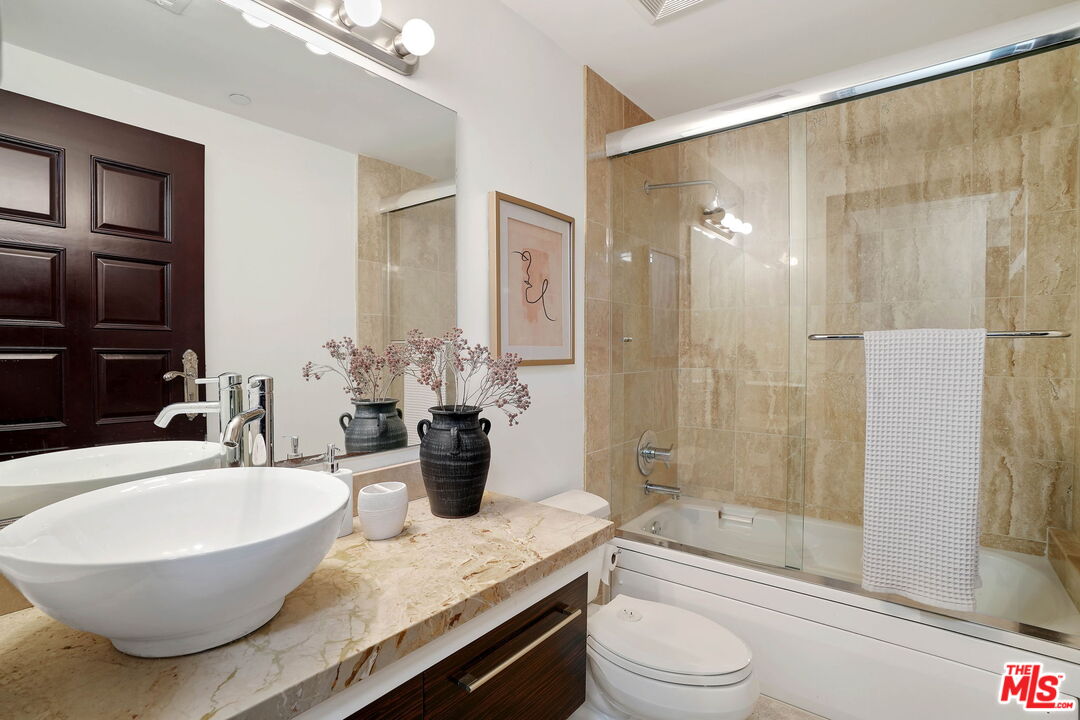Located in a secured controlled-access building near LA's trendiest shopping centers, Cedar Sinai Hospital, and highly rated school district. An elevator leads you right to the doorstep of this sophisticated 2 bed/2 bath condo that offers incredible natural light throughout, with an open concept living, dining, and kitchen area. The spacious floor plan includes a stylish fireplace, a convenient barstool countertop for extra dining, and elegant hardwood flooring throughout the living, dining, hallway, and bedrooms. The primary bedroom features a luxurious ensuite master bath with a beautifully tiled shower, separate jetted tub, with a sink and makeup vanity combo. Not to mention the walk-in closet with plentiful storage space. The guest bathroom also features beautiful touches and features a jetted tub as well. In the hallway you will find the washer and dryer units convenient for your laundry needs. The controlled-access parking garage includes two parking spots for this unit.This one-of-a-kind unit is a must-see!