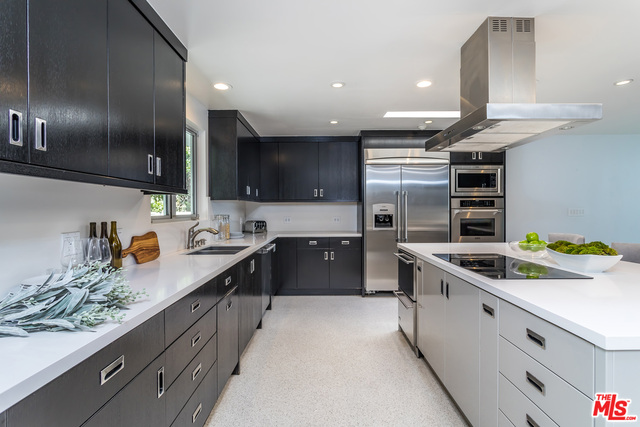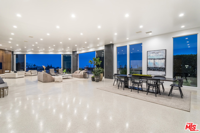 This sophisticated home with stunning design is located at the top of the prestigious Doheny Estates and offers expansive walls of glass with spectacular panoramic city and ocean views. This recently renovated modern home with 4 beds, 4 baths, and office, boasts the convenience of a one-level floorplan. Other features include a 1,600 sq. ft. great room with 12 ceilings, poured-in-place terrazzo floors, and Fleetwood motorized sliding doors opening onto a vast entertainer's outdoor space replete with a pool, spa, fire pit, and outdoor kitchen/dining area. The spacious and luxurious primary suite comes replete with hardwood floors, a spa-like bath, and a generous walk-in closet and opens up directly to the pool, spa, and outdoor shower. In addition to the two-car attached garage with direct access, there are two off-street parking spaces as well. This property offers the classic setting for Southern California living, tailor-made for indoor/outdoor living and entertaining, in one of the most desirable areas in Los Angeles.