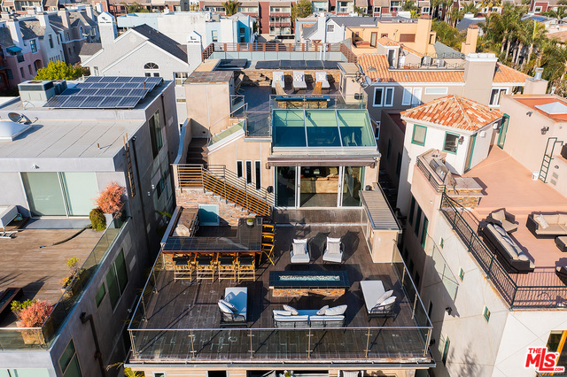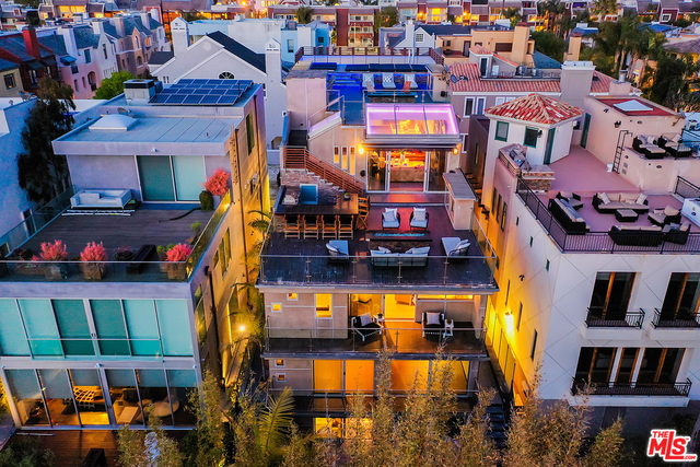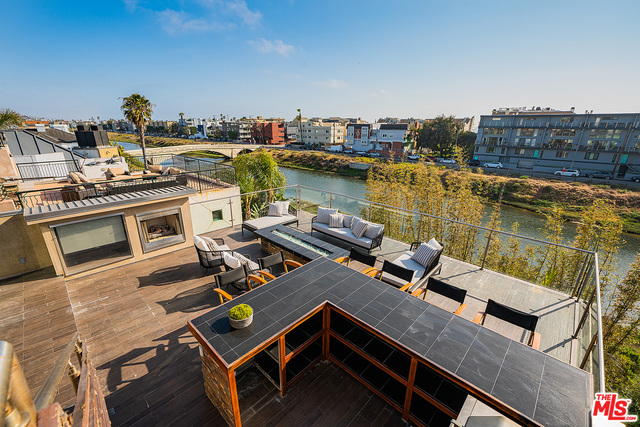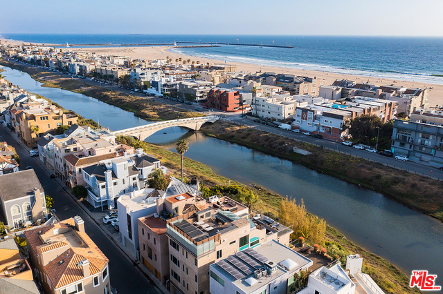 Contemporary statement home on Grand Canal ideal for live/work/play! Located in Marina del Rey's Silver Strand neighborhood, this lofty residence showcases custom-designed spaces created to allow business and pleasure to blend. Four levels of vast rooms, including 7 bedrooms and 11 baths, are crowned by the piece de resistance: two dramatic entertaining decks. Beyond the gated entry is a gallery foyer. The ground level continues to a party room with fully appointed bar, plush home theater and lush private yard with fire pit. A gate opens to a path around the canal and bridge to the beach. A climate-controlled wine storage room, a large day lighted elevator and a 4-car garage complete the floor. The second level houses 5 luxurious bedroom suites. The third level is reserved for a lavish primary suite with kitchenette, dual baths, walk-in closets and a romantic balcony overlooking the canal. A large sitting room and bedroom/office suite share this floor. The entire fourth level is devoted to a spectacular great room with open chefs kitchen and skylit dining and living rooms. It accesses the first of two roof top sun decks, with panoramic views of the Grand Canal plus outdoor kitchen, fireplace, fire pit and TV. Above, a second deck offers a therapeutic lap pool, spa, fireplaces, fire pit, two more TVs and peek-a-boo ocean views.