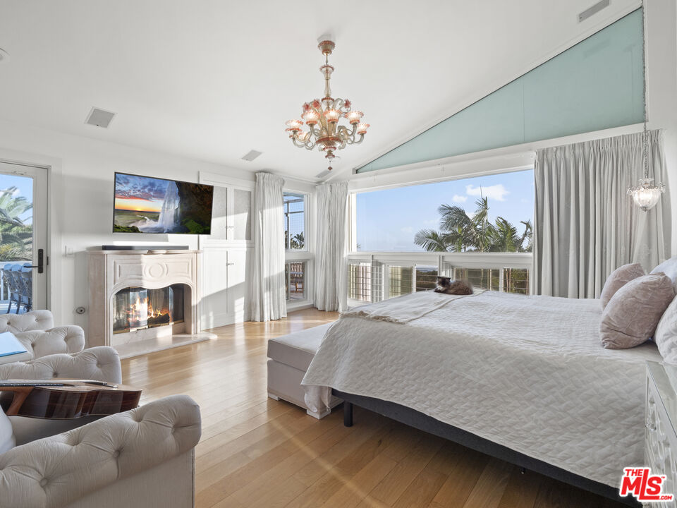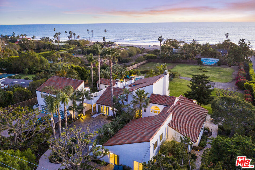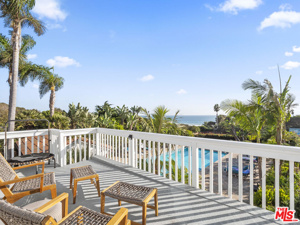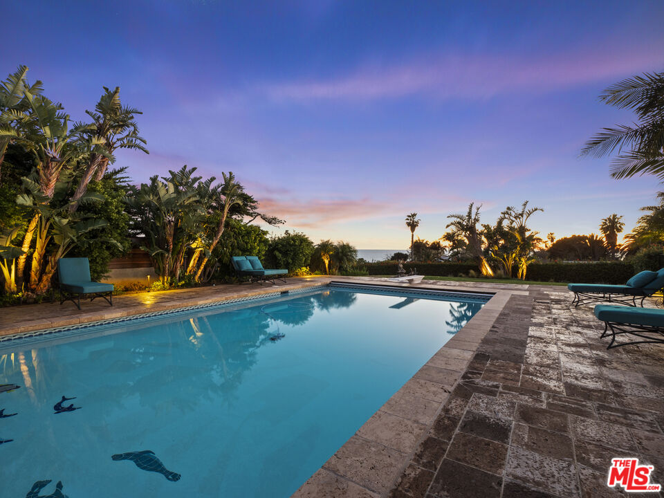This Mediterranean contemporary Malibu Park estate with an ocean view on approximately 2.3 acres offers luxurious living. It provides privacy and security, with ample space for guests and entertainment. Whether enjoying time with family or hosting lavish events, it is the ideal location for any occasion. There are 6 bedrooms and 6.5 bathrooms. The primary suite includes two private baths, two walk-in closets, and a sitting room. Enjoy breathtaking sunsets, and tranquil nights from the upper private deck. The home is finished with the finest materials and has an abundance of natural light. Large windows overlook the private estate and magnificent ocean. The formal living room centers on a cozy fireplace, and the kitchen is newly remodeled with superior stainless steel appliances and ample counter space. The home opens to a private terrace with a large, sparkling pool and spa. The property rolls gently down to Hawaiian-landscaped full palms and a manicured garden. Beyond the terrace is a wide-open space suited for many activities, gardens, and even potential horses. The entire property is gated for added security. The new driveway leads to a 3-car garage and 6 additional parking spaces. This luxurious home is moments away from Zuma Beach, groceries, shopping, restaurants, and Malibu High School.