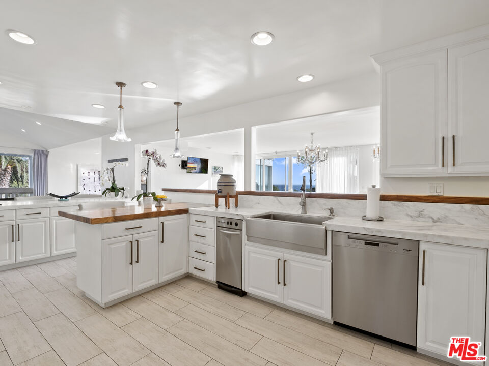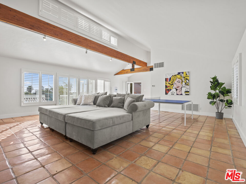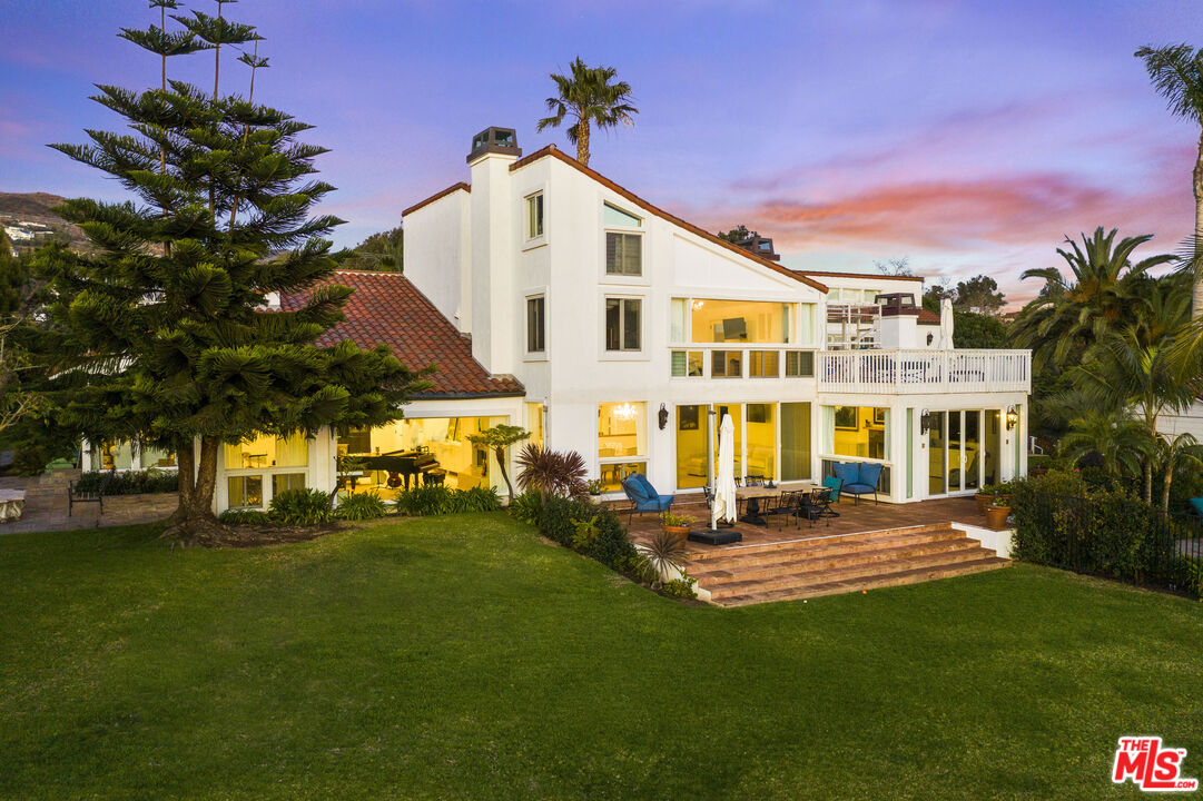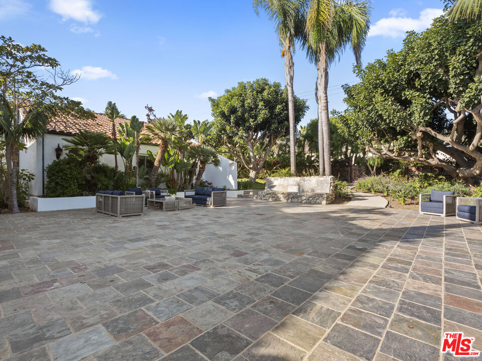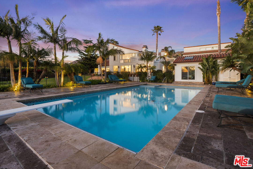 This Mediterranean contemporary Malibu Park estate with an ocean view on approximately 2.3 acres offers luxurious living. It provides privacy and security, with ample space for guests and entertainment. Whether enjoying time with family or hosting lavish events, it is the ideal location for any occasion. There are 6 bedrooms and 6.5 bathrooms. The primary suite includes two private baths, two walk-in closets, and a sitting room. Enjoy breathtaking sunsets, and tranquil nights from the upper private deck. The home is finished with the finest materials and has an abundance of natural light. Large windows overlook the private estate and magnificent ocean. The formal living room centers on a cozy fireplace, and the kitchen is newly remodeled with superior stainless steel appliances and ample counter space. The home opens to a private terrace with a large, sparkling pool and spa. The property rolls gently down to Hawaiian-landscaped full palms and a manicured garden. Beyond the terrace is a wide-open space suited for many activities, gardens, and even potential horses. The entire property is gated for added security. The new driveway leads to a 3-car garage and 6 additional parking spaces. This luxurious home is moments away from Zuma Beach, groceries, shopping, restaurants, and Malibu High School.