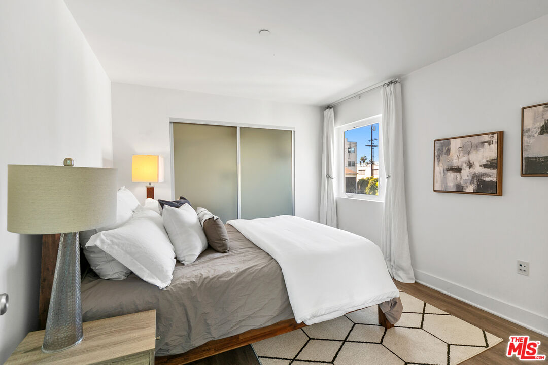 Offering an open and spacious, naturally light filled architectural townhouse for absolute live-in comfort. Open floor plan with high ceilings and floor-to-ceiling windows. Gourmet kitchen with stainless steel appliances and distinctive wood cabinetry. Open floating mezzanine that can be utilized as an office area. Indoor laundry with stackable washer/dryer. French doors with remote controlled curtains that open up to a private patio. Underground two single-parking spaces in gated community garage with an EV charging unit. Walk to WholeFoods, Trader Joes, restaurants, and shops. Feel the calm and comfort of home with beautiful and extraordinary architecture in the bustling life of Santa Monica!