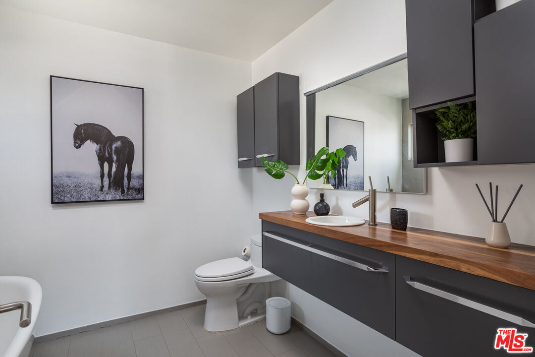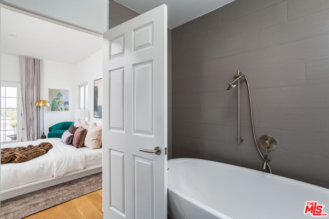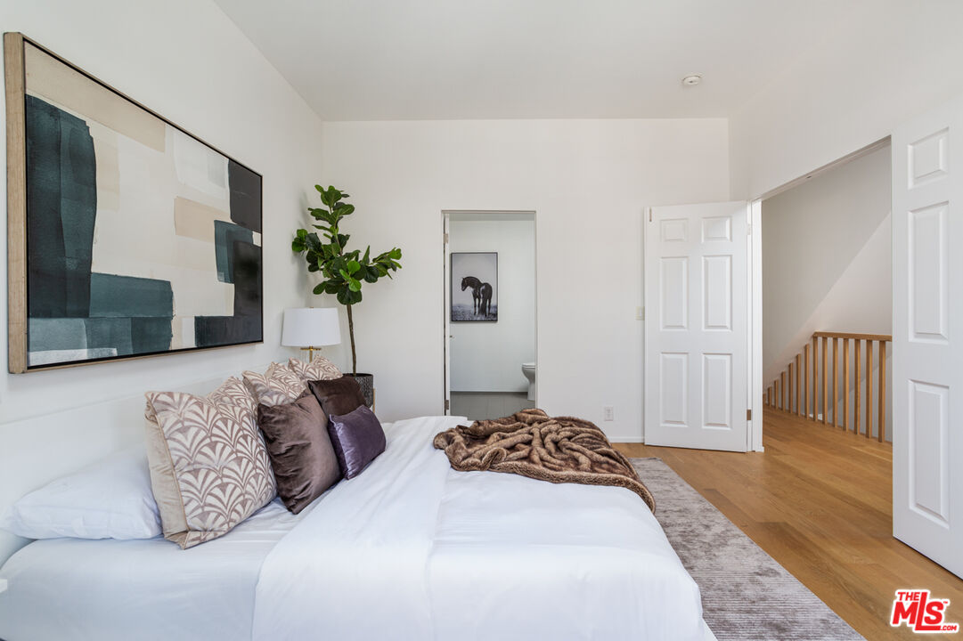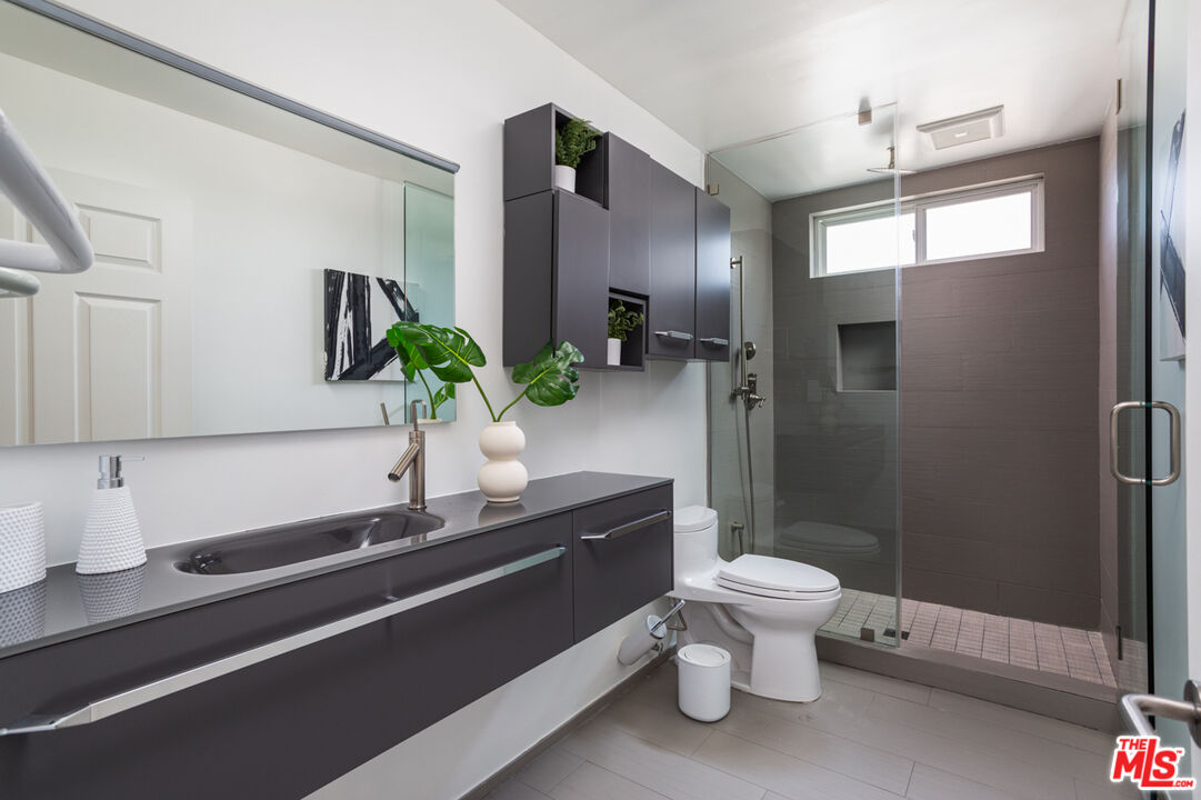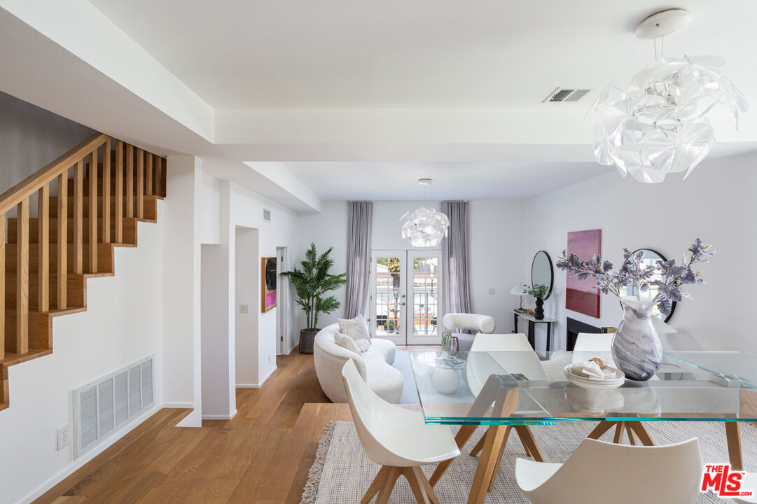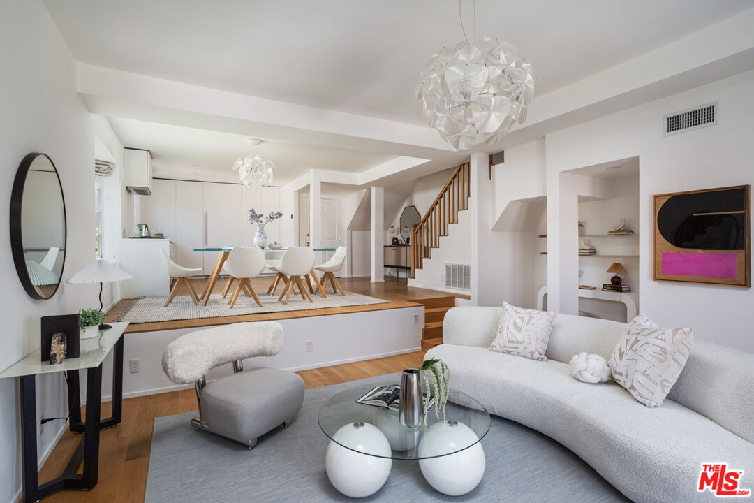 Perched on the desirable south side of Ventura Blvd., this exquisitely remodeled Studio City residence offers breathtaking city and mountain views. No expense was spared in the transformation of this sophisticated condo, with every detail reflecting quality craftsmanship, from the Ann Sacks tilework to the curated Italian fixtures. Featuring two generously sized ensuite bedrooms, a chic powder room, and private balconies on both floors, this home seamlessly blends comfort and luxury. Step into an open-concept living space where soaring ceilings, wide-plank white oak floors, and a sleek modern fireplace set the tone for contemporary elegance. The gourmet kitchen is a showpiece, fitted with custom Boffi cabinetry, premium Miele appliances, and flawless finishes, perfect for both entertaining and everyday living. The primary suite is a true retreat, boasting grand double doors, a spacious walk-in closet, its own private balcony, and a spa-inspired bathroom complete with an oversized soaking tub. The second bedroom is equally well-appointed, with an ensuite bath, large windows, and an abundance of natural light. Additional highlights include an in-unit washer/dryer, secured tandem parking for two cars, and ample guest parking. Located within the coveted Carpenter school district and just steps from Studio City's premier dining, boutique shopping, coffee spots, and a vibrant farmers market, this exceptional home offers both style and convenience at its finest.