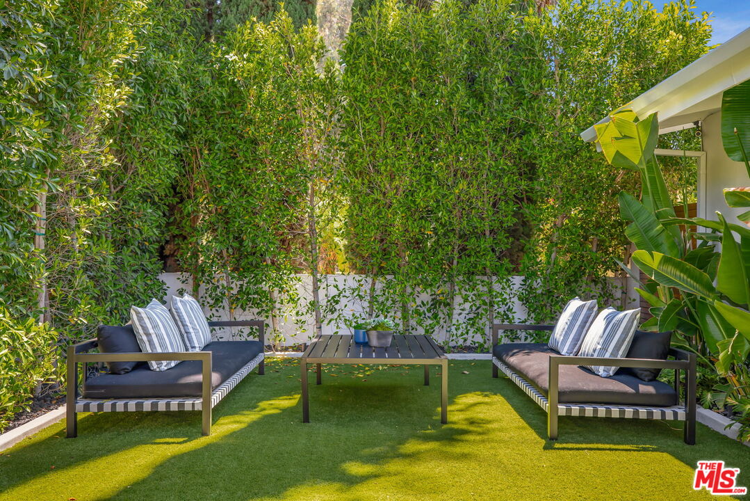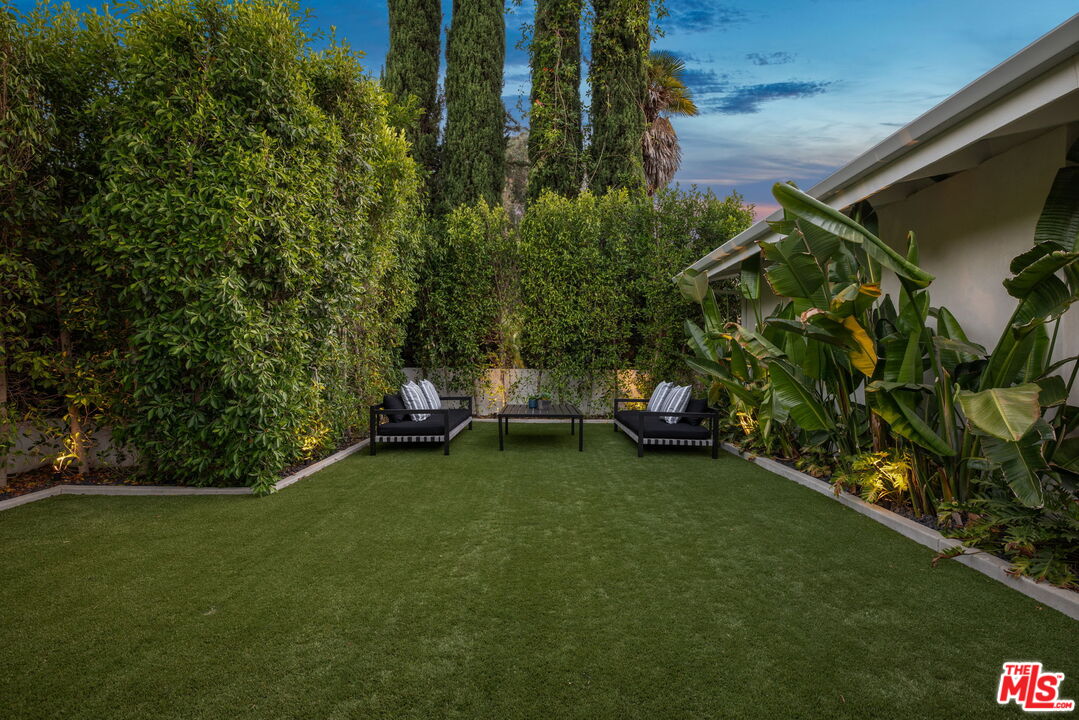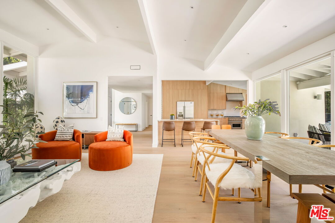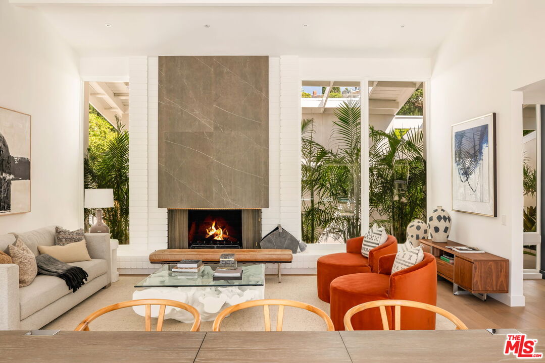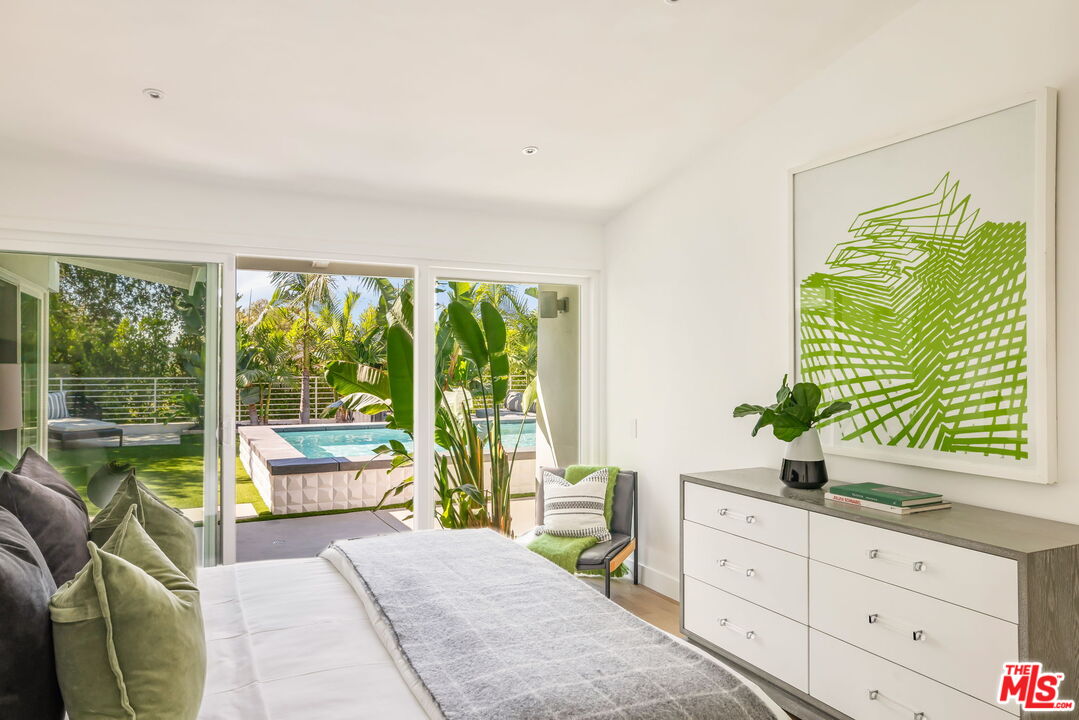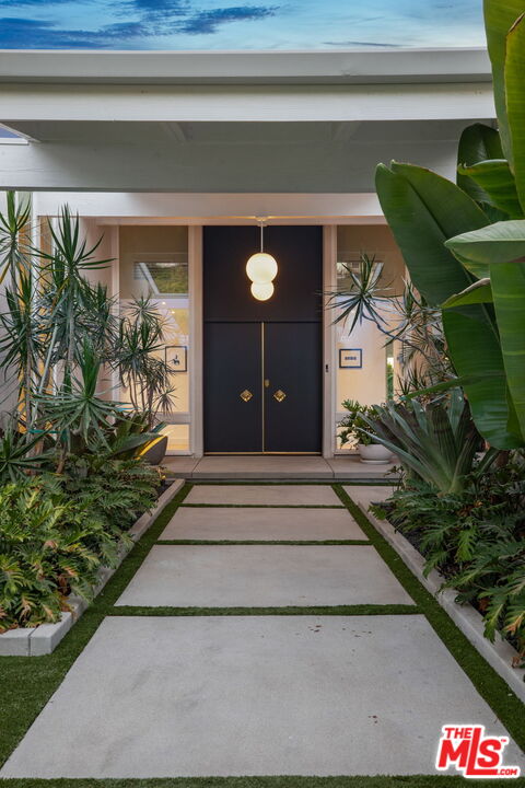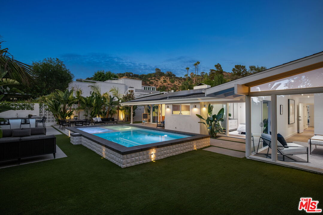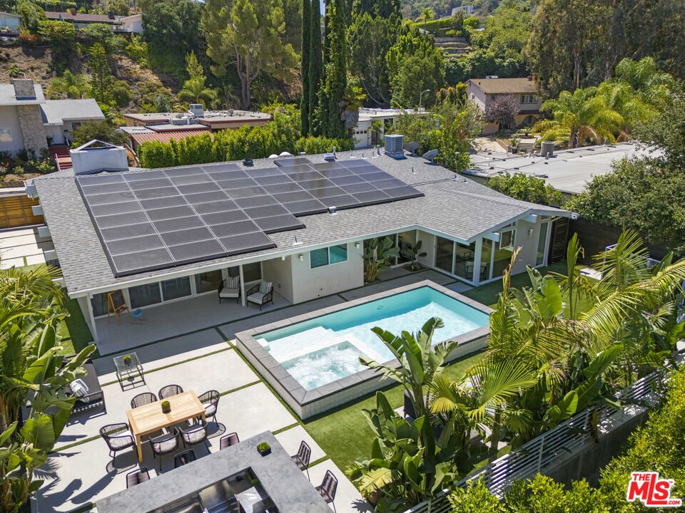 Renovated 1960s single-story Midcentury is epitome of southern California chic. Living room offers exposed beams & is anchored by stone fireplace & floor to ceiling windows. Kitchen counter tops & island w/ bar seating utilize Taj Mahal stone w/ waterfall edge & integrated sink. European white oak floors run throughout. But the real star is the saltwater pool, spa & Baja bench. Hybrid pool filtration & heater ensures you enjoy pool in no time & maintain perfect comfort. If outdoor cooking is your passion, kitchen offers bar seating for at least 8, BBQ, 2 refrigerators, pizza oven, gas burners & sink. And the front yard? Owner transformed it into a turf field, perfect for kids outdoor activities. Need more space? Detached garage is primed for ADU conversion. Compound is gated & hedged ensuring privacy. What's more, home is a Tesla lover's dream w/ 4 power walls & solar. Only minutes from premiere schools like Harvard Westlake, Campbell Hall, Carpenter Elementary plus upscale amenities like Equinox, Erewhon & Sushi Row.