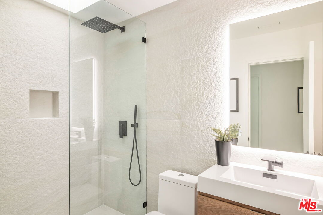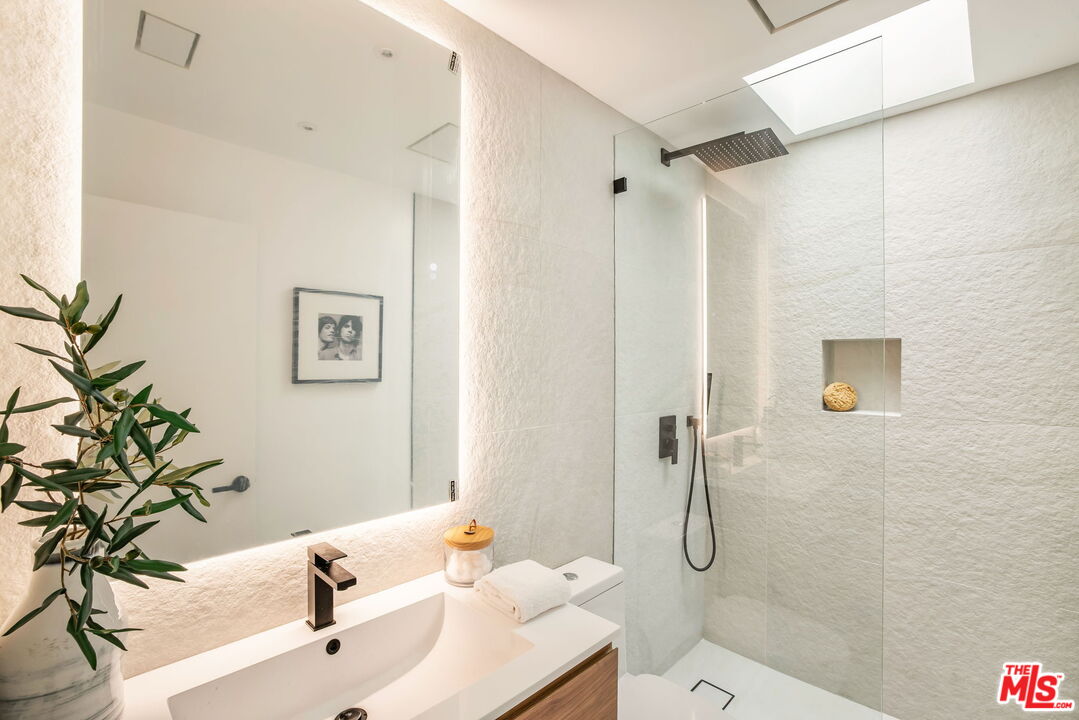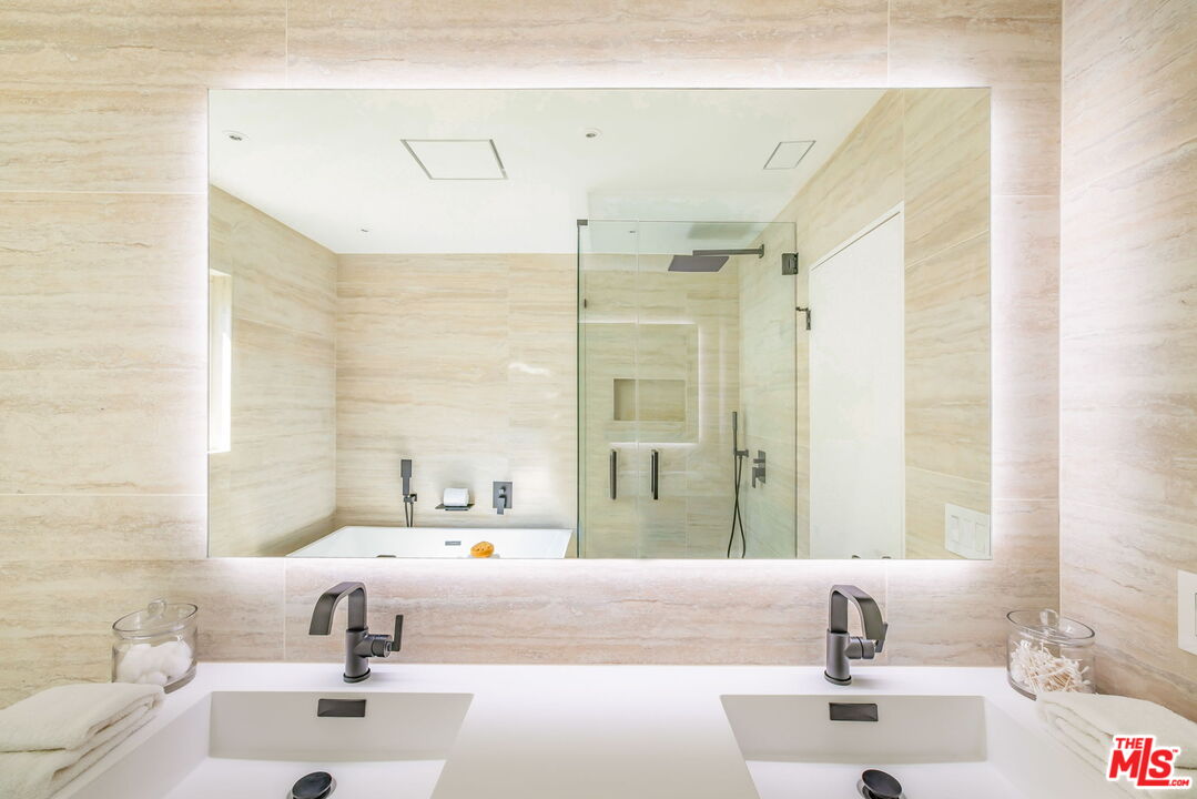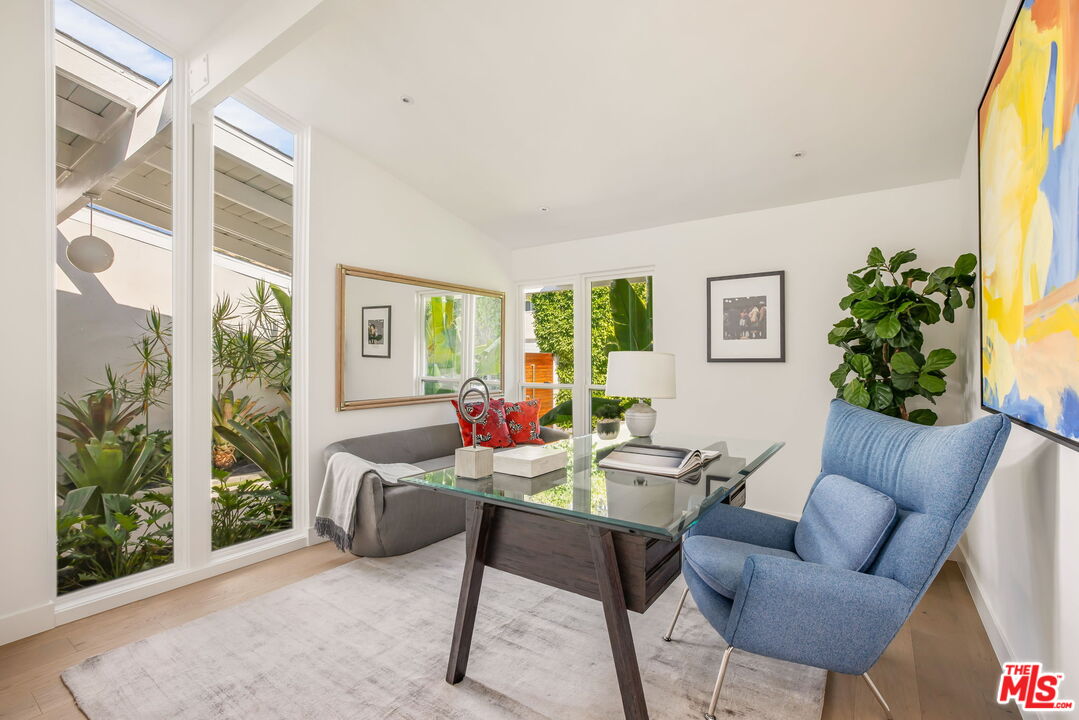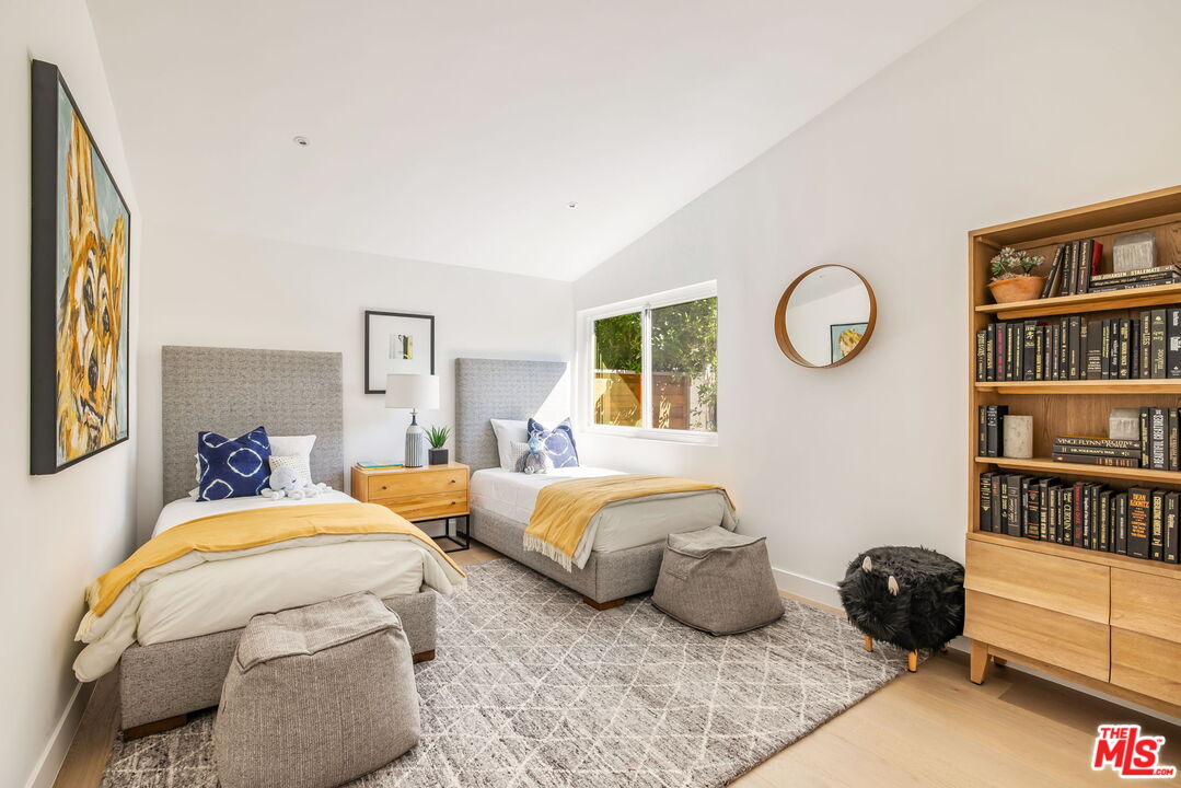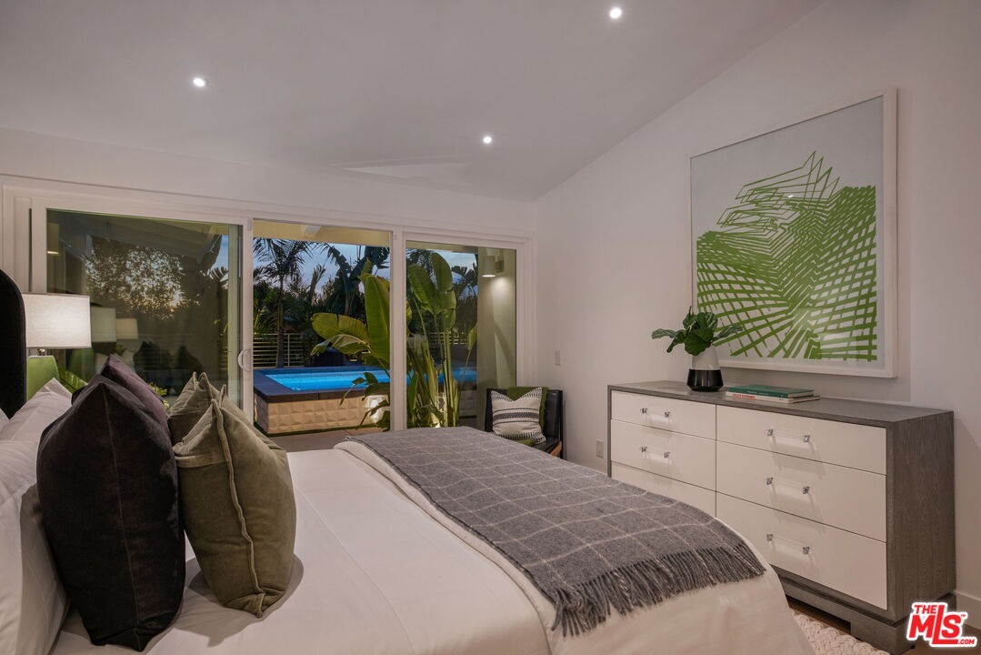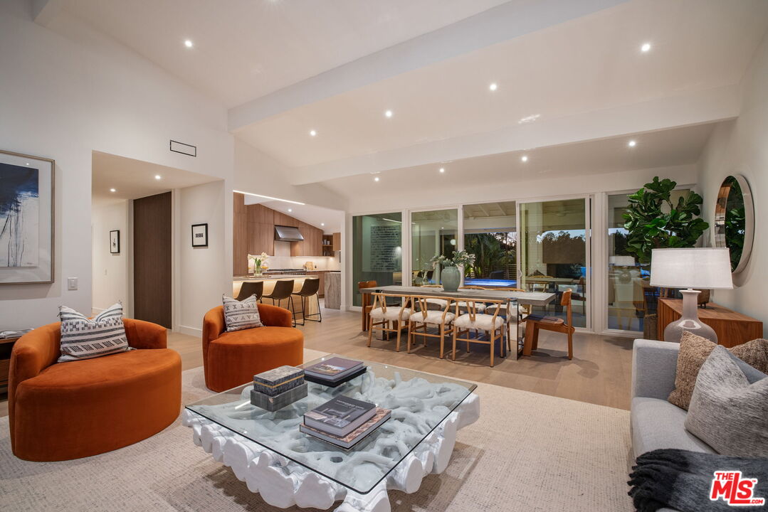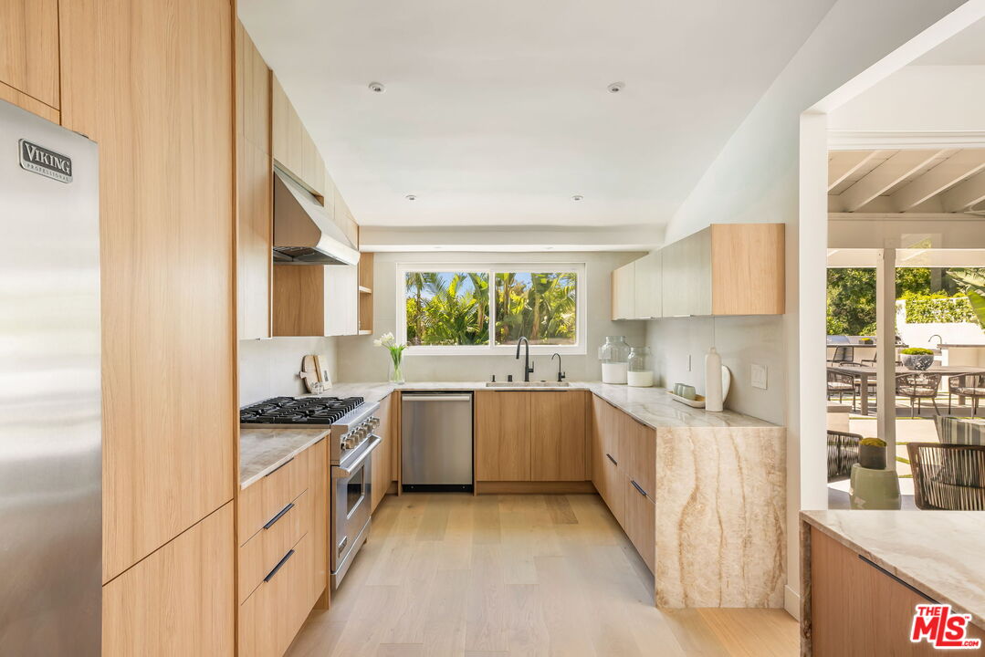 Renovated 1960s single-story Midcentury is epitome of southern California chic. Living room offers exposed beams & is anchored by stone fireplace & floor to ceiling windows. Kitchen counter tops & island w/ bar seating utilize Taj Mahal stone w/ waterfall edge & integrated sink. European white oak floors run throughout. But the real star is the saltwater pool, spa & Baja bench. Hybrid pool filtration & heater ensures you enjoy pool in no time & maintain perfect comfort. If outdoor cooking is your passion, kitchen offers bar seating for at least 8, BBQ, 2 refrigerators, pizza oven, gas burners & sink. And the front yard? Owner transformed it into a turf field, perfect for kids outdoor activities. Need more space? Detached garage is primed for ADU conversion. Compound is gated & hedged ensuring privacy. What's more, home is a Tesla lover's dream w/ 4 power walls & solar. Only minutes from premiere schools like Harvard Westlake, Campbell Hall, Carpenter Elementary plus upscale amenities like Equinox, Erewhon & Sushi Row.