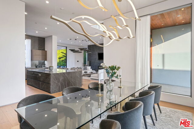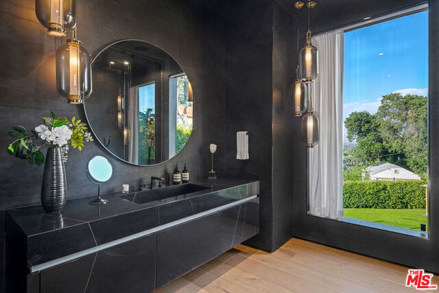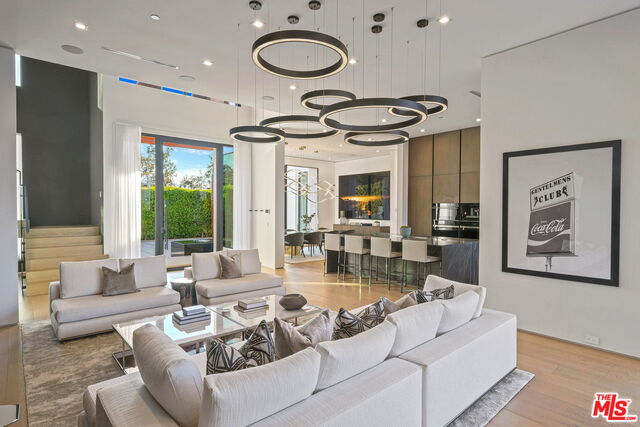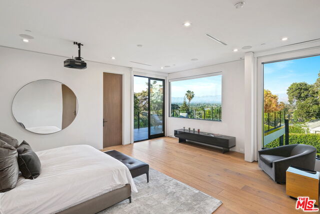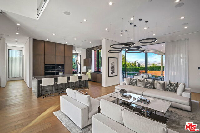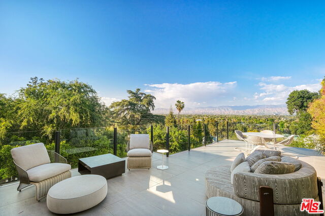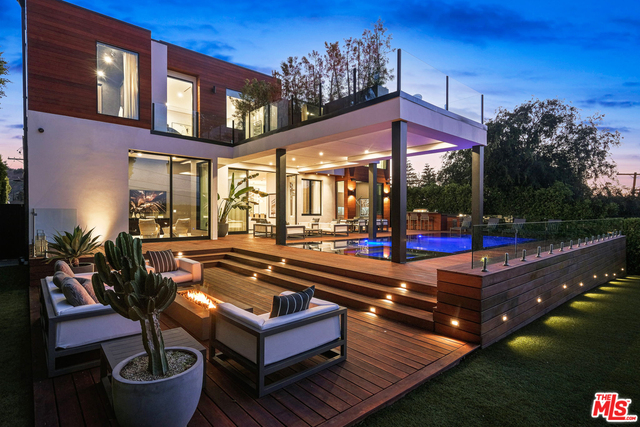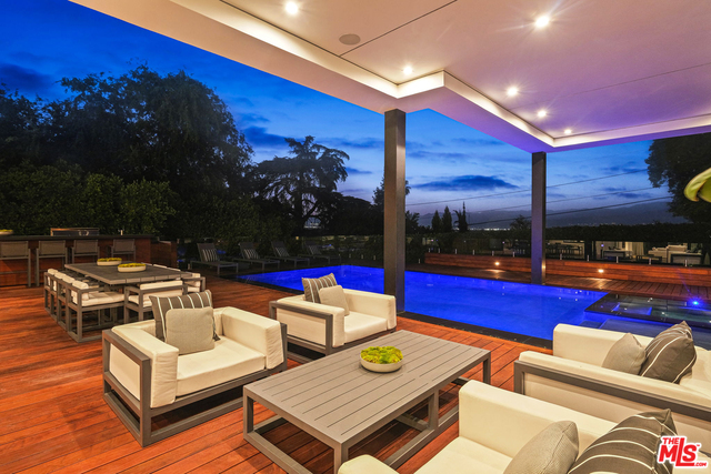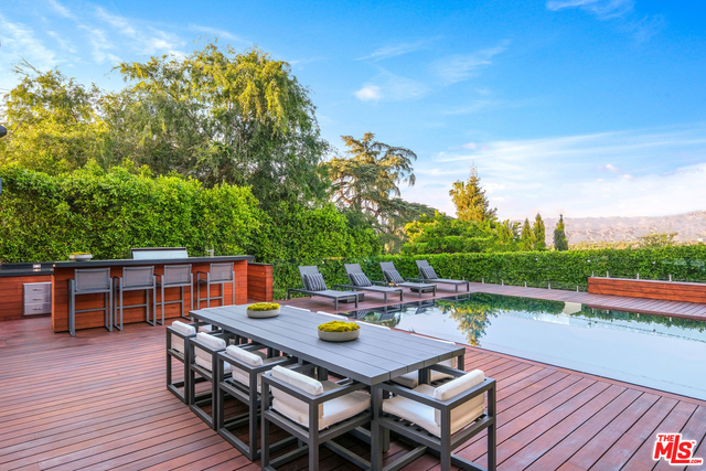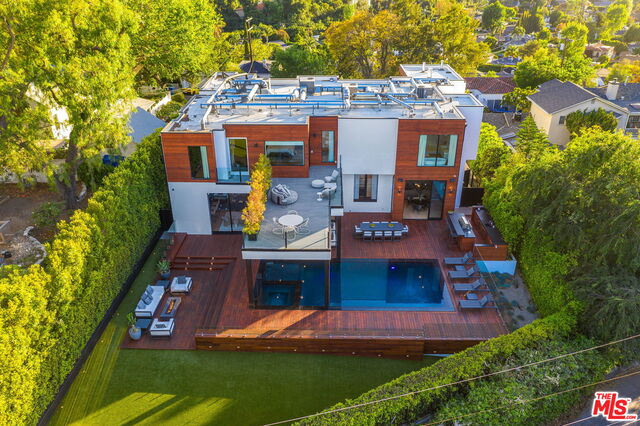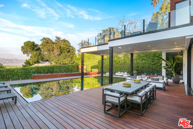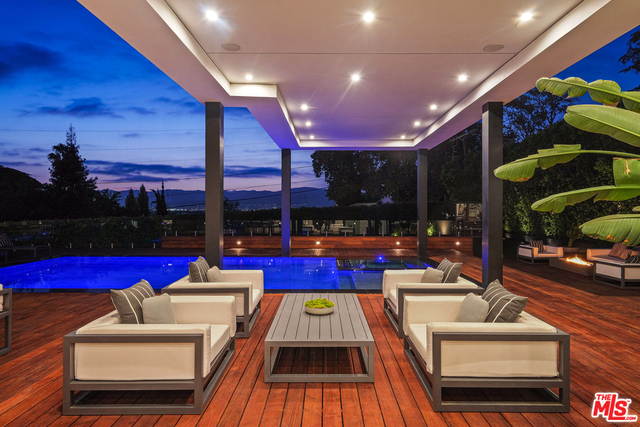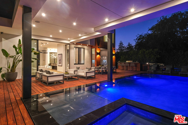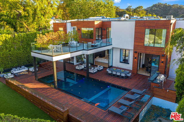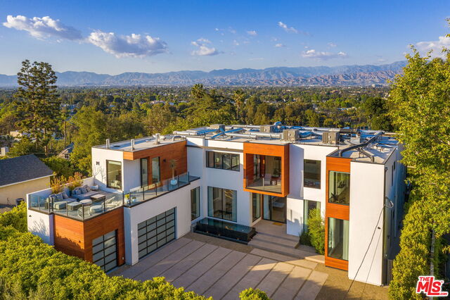 A rare and exquisite offering in a highly sought-after pocket south of the Blvd. in Studio City, this custom-built architectural masterpiece sits on over 1/3 of an acre and features panoramic sunrise-to-sunset views of the mountains and city lights. With high-end custom finishes throughout and natural light pouring through 14' ceilings with walls of glass, this home boasts the ideal floorplan with seamless indoor/outdoor living, making it perfect for entertaining. A chef's kitchen, with Wolf and Miele appliances, opens up to an expansive backyard with a zero-edge pool & spa, outdoor kitchen, infrared sauna, and fire pit. The luxurious owner's suite converts to a private movie theater and comes replete with two stunning bathrooms and walk-in closets. Five additional en-suite bedrooms, media room, wet bar, gym, 3-car garage, gated 10+ car motor court, and Control4 system complete this home.
