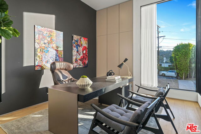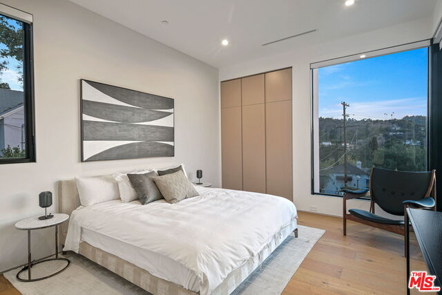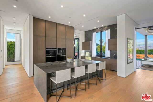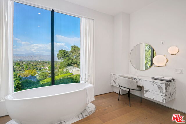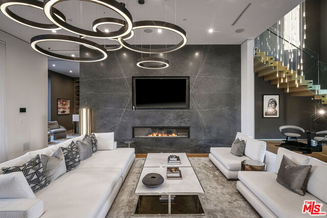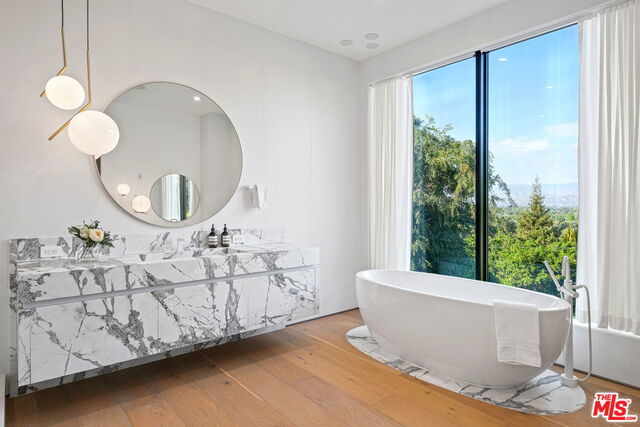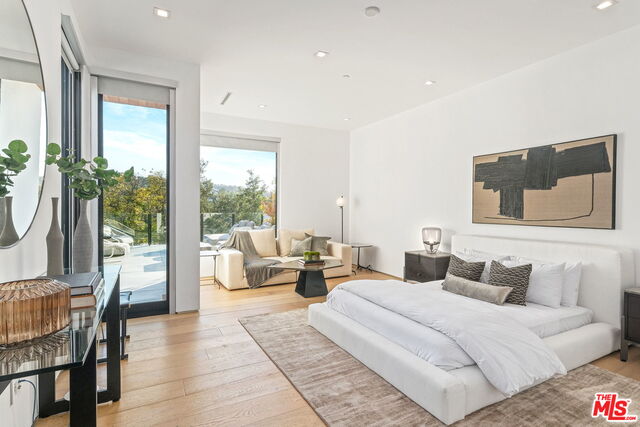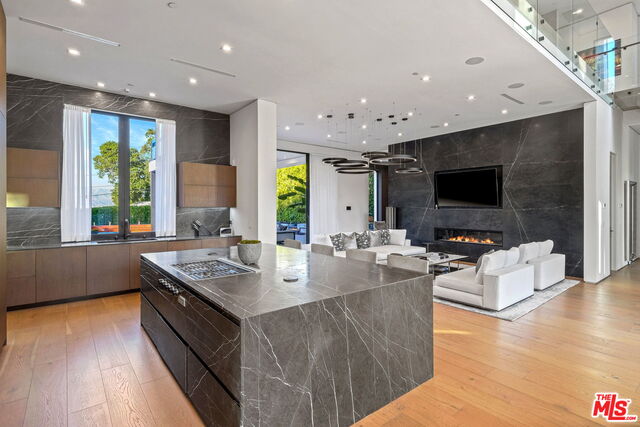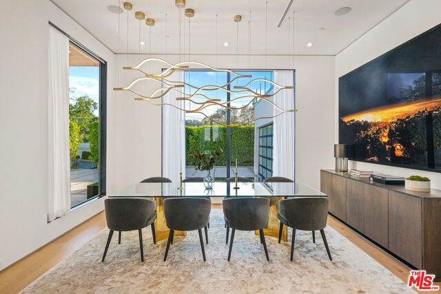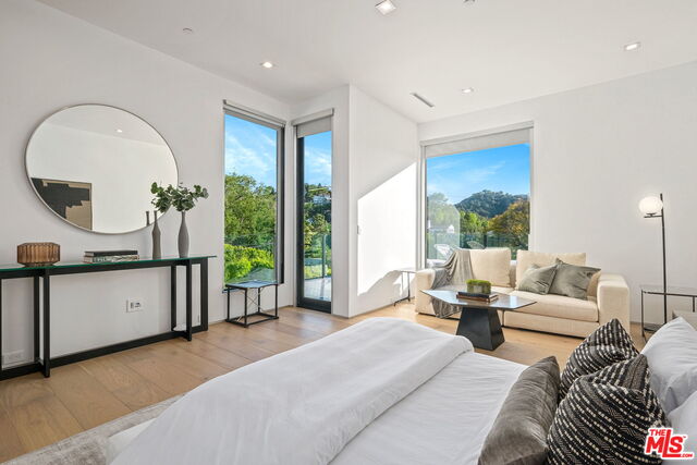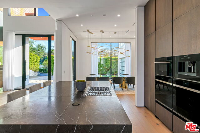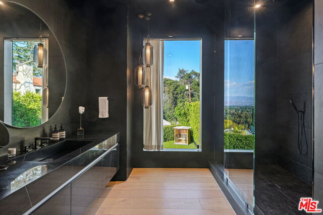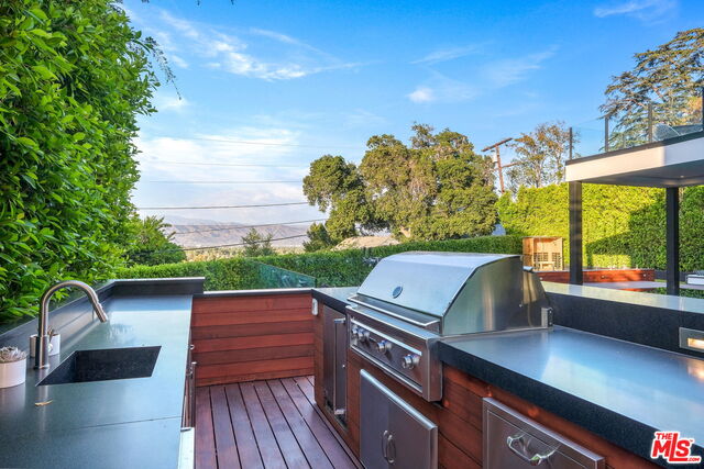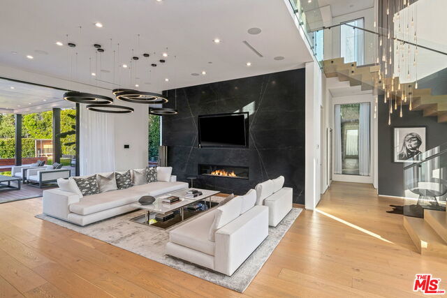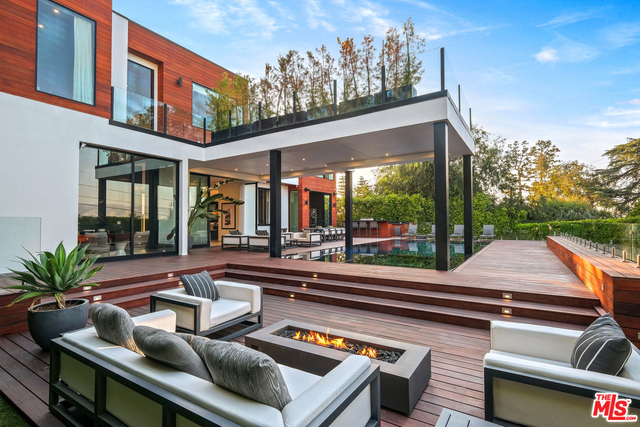 A rare and exquisite offering in a highly sought-after pocket south of the Blvd. in Studio City, this custom-built architectural masterpiece sits on over 1/3 of an acre and features panoramic sunrise-to-sunset views of the mountains and city lights. With high-end custom finishes throughout and natural light pouring through 14' ceilings with walls of glass, this home boasts the ideal floorplan with seamless indoor/outdoor living, making it perfect for entertaining. A chef's kitchen, with Wolf and Miele appliances, opens up to an expansive backyard with a zero-edge pool & spa, outdoor kitchen, infrared sauna, and fire pit. The luxurious owner's suite converts to a private movie theater and comes replete with two stunning bathrooms and walk-in closets. Five additional en-suite bedrooms, media room, wet bar, gym, 3-car garage, gated 10+ car motor court, and Control4 system complete this home.