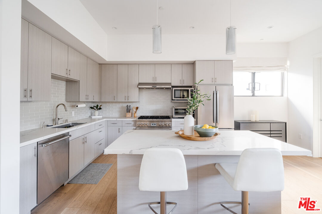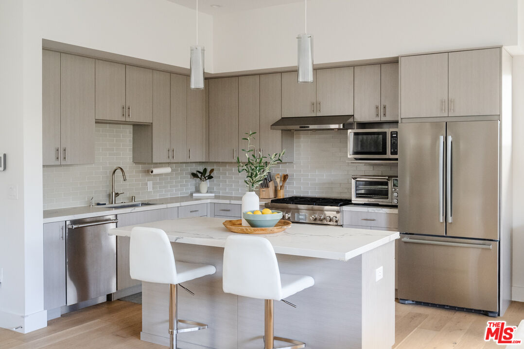 *Property was tenant occupied for the first 90 days on market and is now vacant. The Gentry, an architecturally sophisticated building constructed in 2020 and perfectly placed on a quiet tree lined street in the heart of Studio City, consists of 10 private residences and offers modern living with luxury finishes. As you enter this three bedroom, two and a half bathroom residence, you'll be greeted by the elegance of wide plank wood flooring, a gourmet kitchen featuring quartz counters, a stainless steel farmhouse inset sink, and appliances by Thermador and Bosch. Warm natural light pours in from the oversized balcony which extends into an open floor plan perfect for dining and entertaining complete with a glass fireplace. Each bedroom provides its own zen atmosphere in this stunning front facing unit. The primary suite includes a large walk-in closet complete with a hotel styled bath and its own private balcony. Indulge in the convenience of your own private two car garage, ensuring secure storage for your vehicles. Enjoy the famed Silver Triangle, CBS Studios and best coffee shops, restaurants and bars at your fingertips. Nearby Carpenter Charter Elementary, which has consistently remained one of the top schools in the district and state. The perfect blend of form and function, style and substance in this elegant home. Come by and see for yourself!