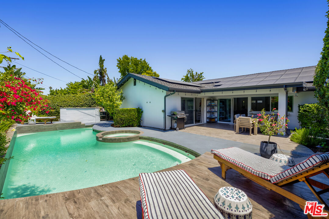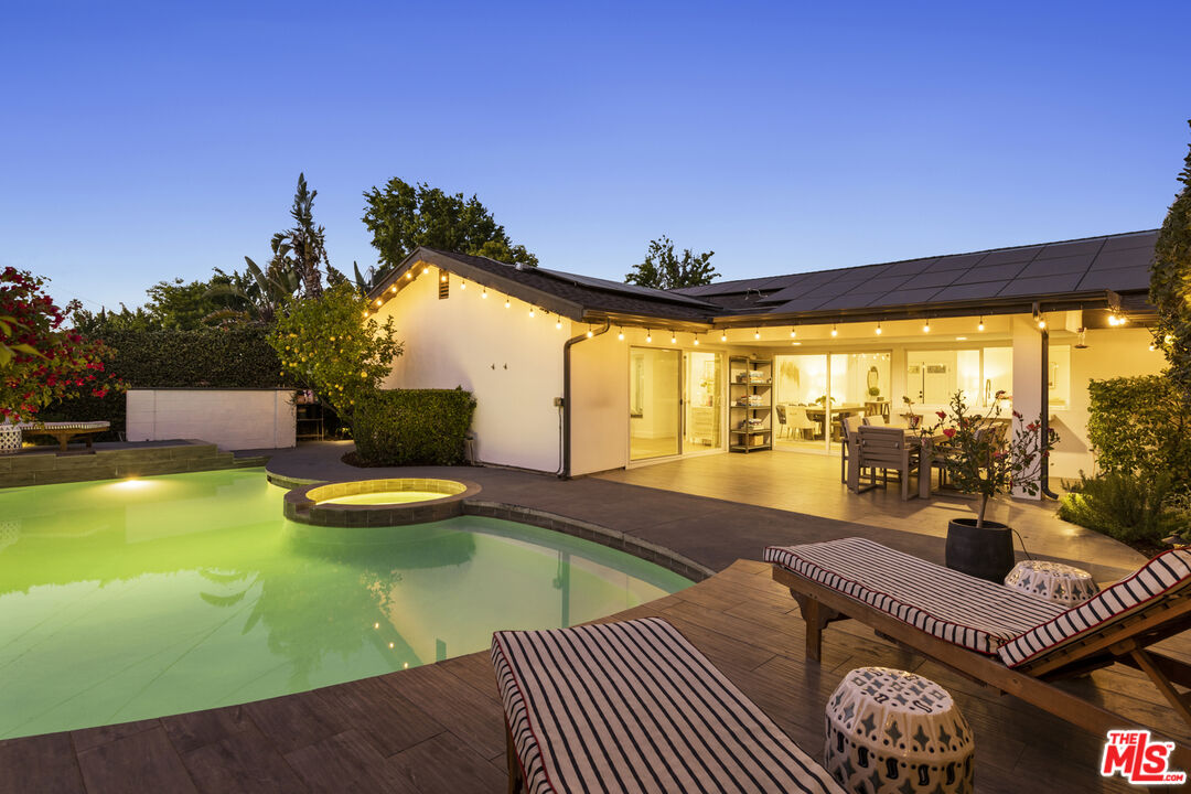 Nestled in the highly sought-after neighborhood of Valley Village, this recently renovated, solar powered Mid-Century home with 3 Beds / 2.5 Baths an attached 2-car garage, pool and jacuzzi, is a true oasis for those seeking the ultimate California lifestyle. Step inside and experience the seamless harmony of design and functionality. The open floor plan with its abundant natural light creates an inviting atmosphere, with the main living space adorned by soaring vaulted ceilings. 5215 Babcock is a home that effortlessly combines comfort and sophistication, offering limitless possibilities for both relaxation and entertainment, while the hedged yard and gated driveway creates the personal sanctuary you've always longed for. Don't miss the opportunity to own this extraordinary residence.