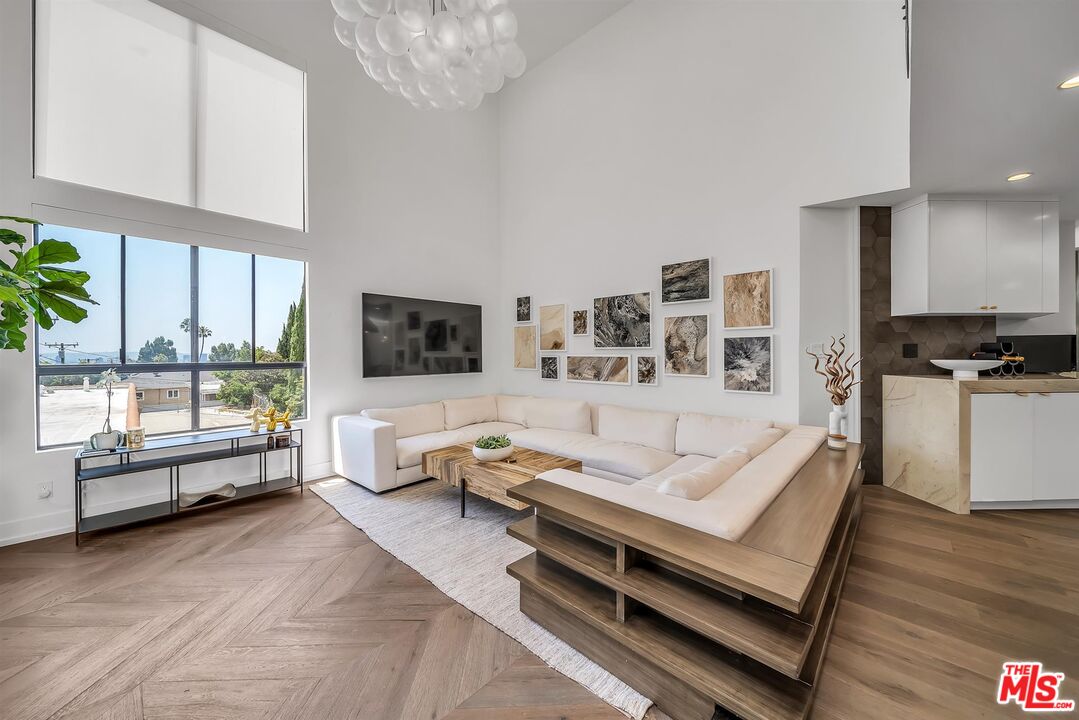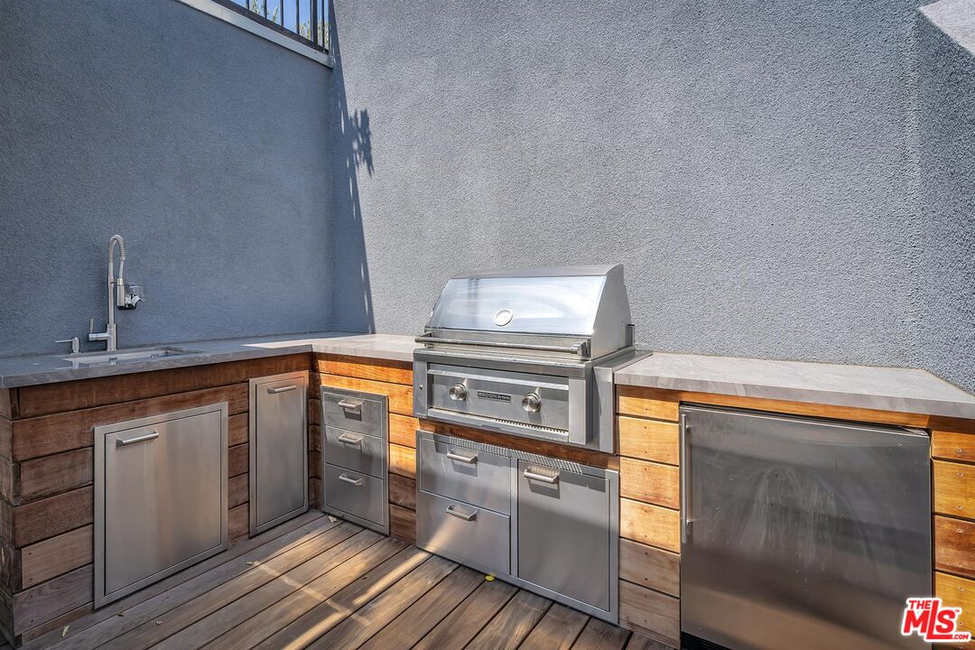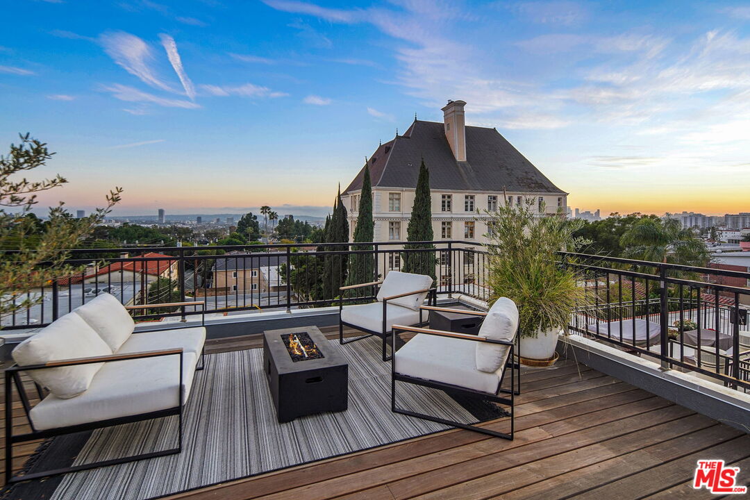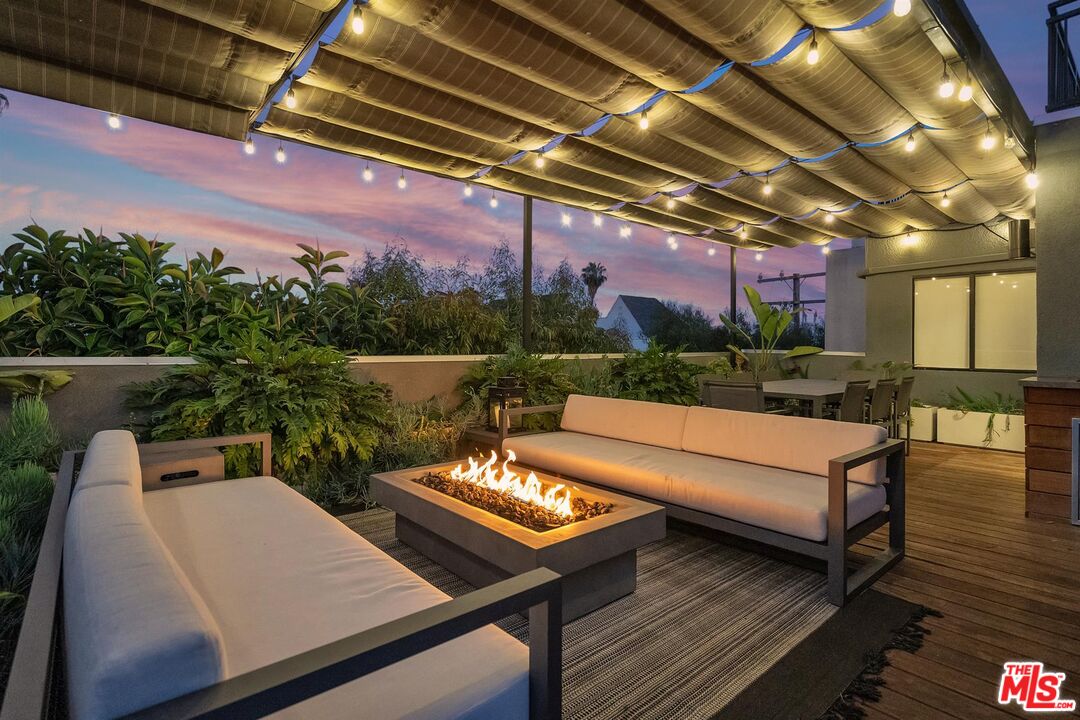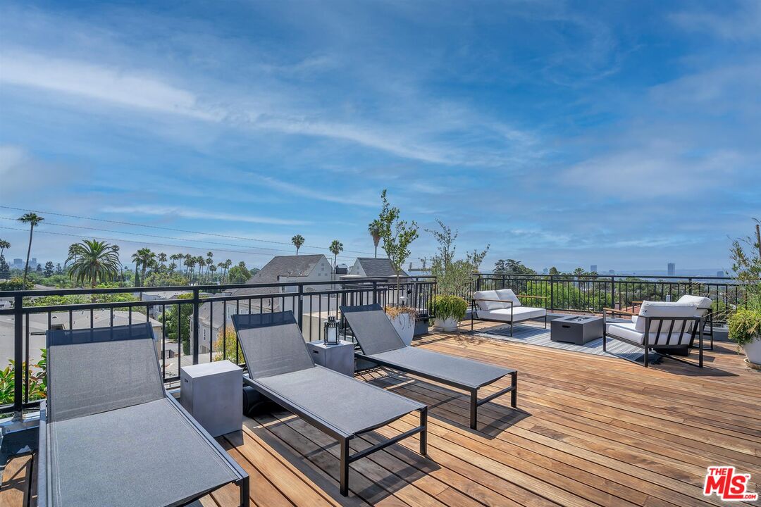 Tenant in place, no showings before September 24th. Recently featured in Architectural Digest, this stunning contemporary Penthouse is located in the heart of West Hollywood and is replete with breathtaking panoramic views sweeping from DTLA to the Hollywood Hills and the Pacific Ocean. Entertain or relax outdoors year-round with two spacious levels of private rooftop decks that feature Brazilian Ipe hardwood, two large fire pits, retractable awning, custom railings, and a fully-serviced outdoor kitchen with weather-treated quartz. This designer 3 bed and 3 bath home boasts unrivaled finishes such as hand-scraped plaster walls, wainscoting, crown molding with matching baseboards, electric roller shades, high ceilings that allow for an abundance of natural light, and a fireplace in the great room. The primary suite has a large and luxurious butterfly marble dual head shower and his and hers walk-in closets. Balcony with a second built-in barbecue area off the dining area. The upstairs third bedroom also features a walk-in closet and ensuite bathroom. Two side-by-side underground parking spots are included. Separate laundry closet.