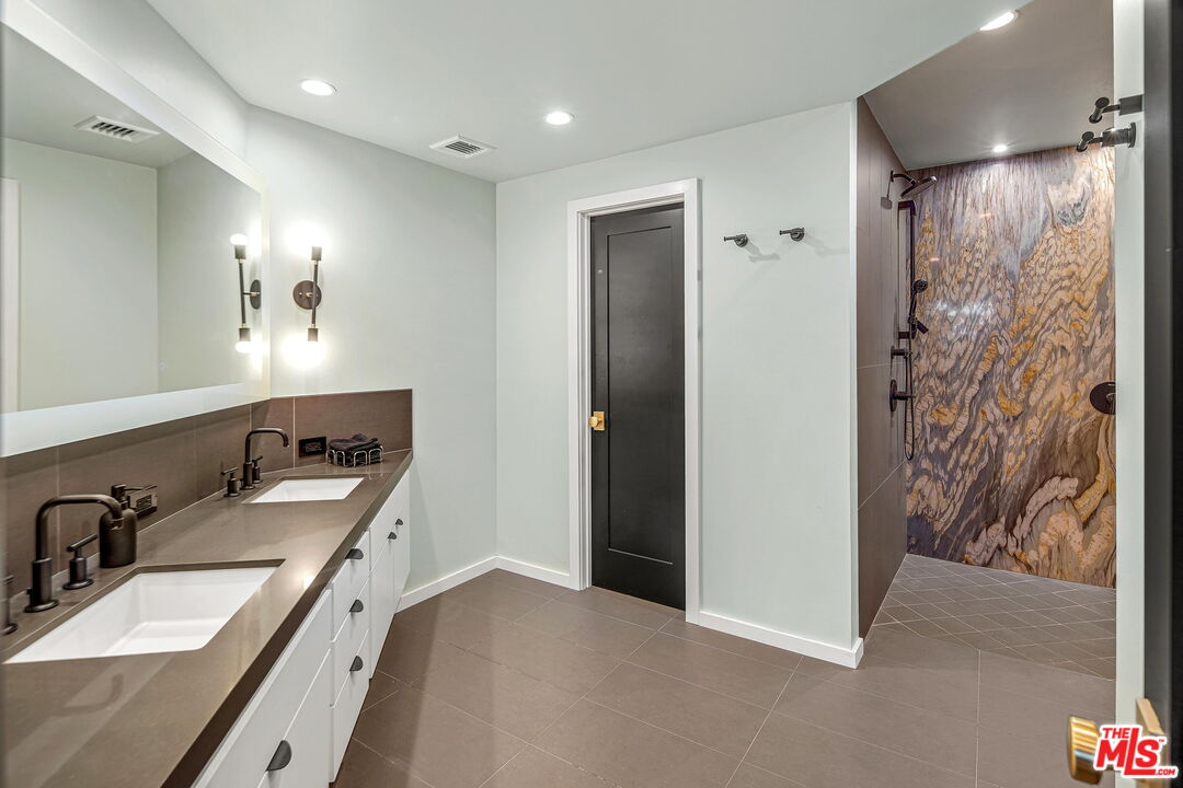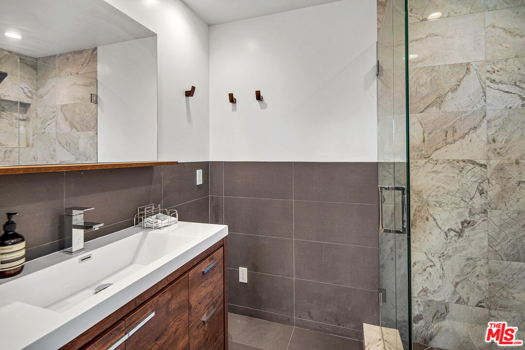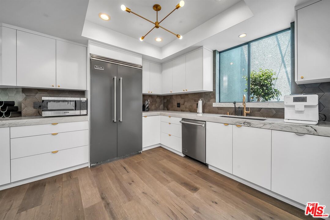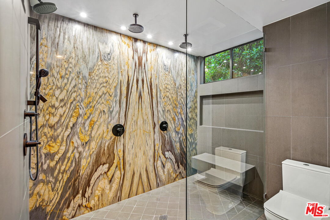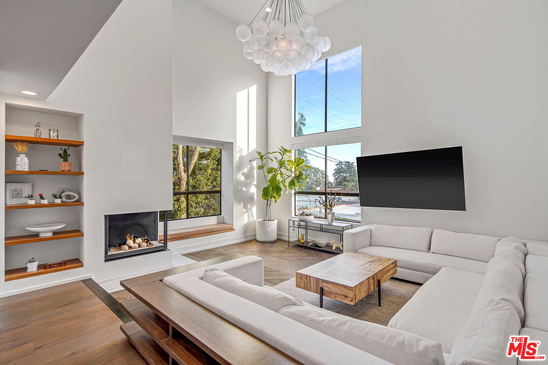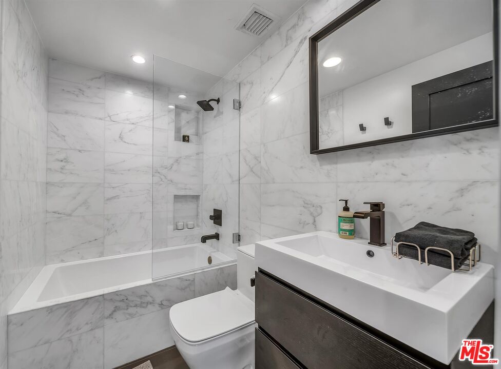 Tenant in place, no showings before September 24th. Recently featured in Architectural Digest, this stunning contemporary Penthouse is located in the heart of West Hollywood and is replete with breathtaking panoramic views sweeping from DTLA to the Hollywood Hills and the Pacific Ocean. Entertain or relax outdoors year-round with two spacious levels of private rooftop decks that feature Brazilian Ipe hardwood, two large fire pits, retractable awning, custom railings, and a fully-serviced outdoor kitchen with weather-treated quartz. This designer 3 bed and 3 bath home boasts unrivaled finishes such as hand-scraped plaster walls, wainscoting, crown molding with matching baseboards, electric roller shades, high ceilings that allow for an abundance of natural light, and a fireplace in the great room. The primary suite has a large and luxurious butterfly marble dual head shower and his and hers walk-in closets. Balcony with a second built-in barbecue area off the dining area. The upstairs third bedroom also features a walk-in closet and ensuite bathroom. Two side-by-side underground parking spots are included. Separate laundry closet.