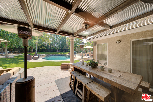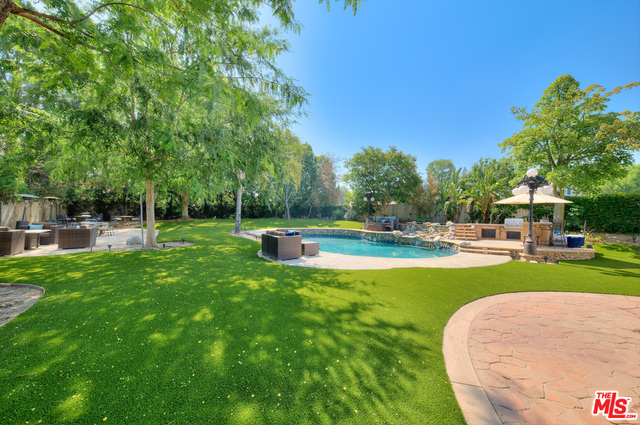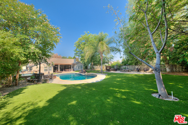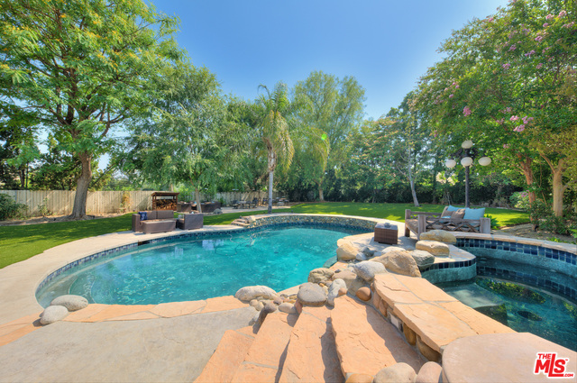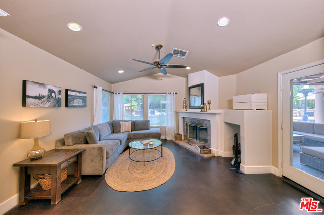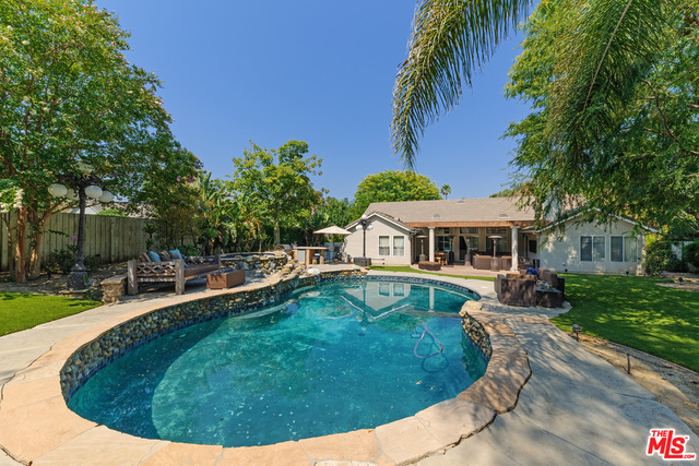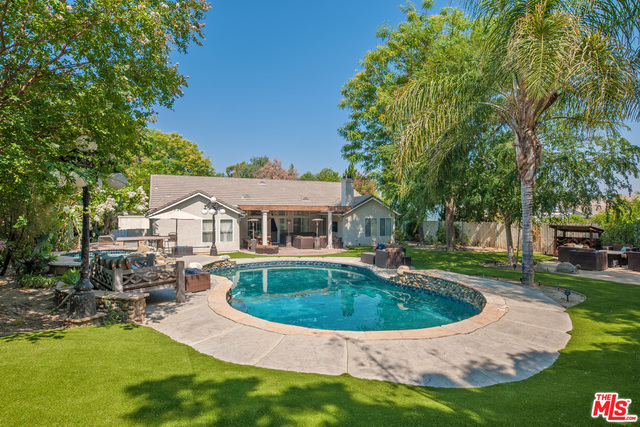 Do not miss this completely renovated, single level home in the prestigious, gated Penfield Estates. Located on a large corner lot, this home features an open floor plan w/ ebony-stained distressed concrete flooring throughout, window-lined Great Room, remodeled cooks kitchen w/ custom wooden bar, copper farm sink, Silestone countertops, top of the line appliances including built-in refrigerator & two wine/bar refrigerators, solid wood interior doors, 6 inch baseboards throughout, wood-burning fireplace w/ optional gas starter, Sonos system wired for 5 separate zones including Kitchen, Living Room, Master Bedroom, Patio & the Yard, 3 zone A/C, outdoor living space w/ custom built awning, salt-water pool & custom (standing depth) jacuzzi w/ waterfall & new heater, Premium artificial turf on entire 1/2 acre (landscape lighting wired underneath) & lrg flagstone area in back yard, spacious for hosted events & gatherings, 3 car garage & more. See pvt remarks for showing requests.